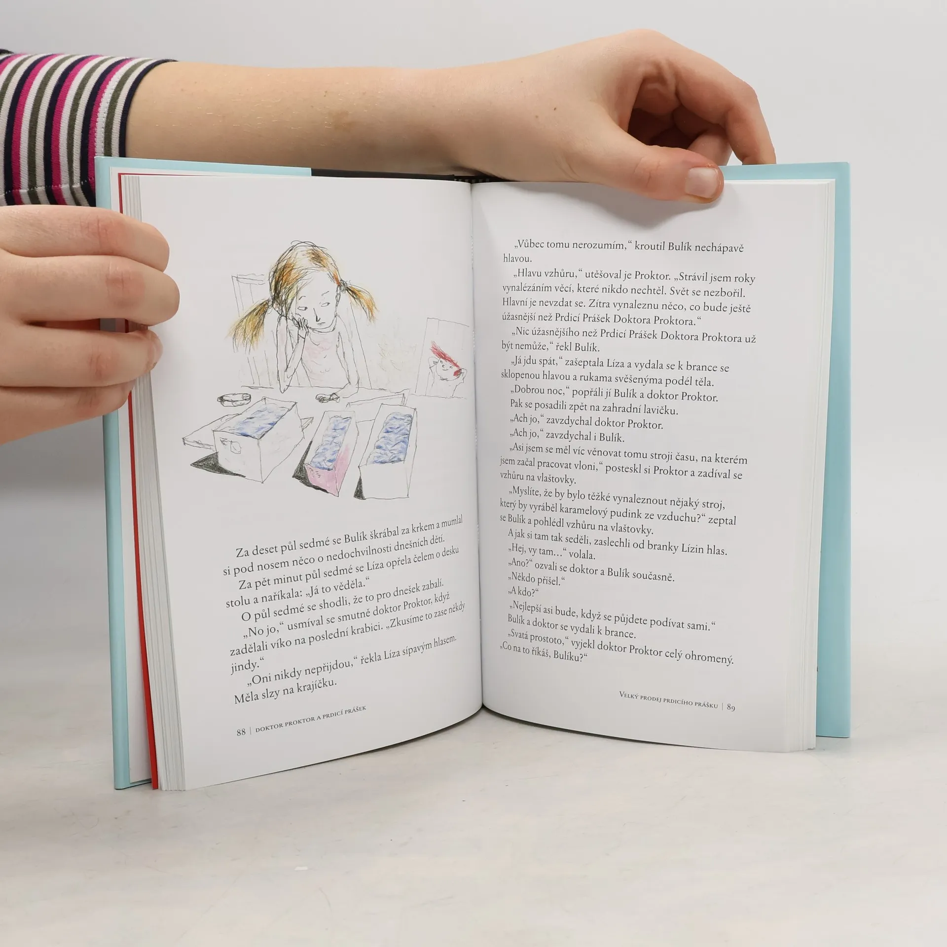 Příběh o tom, jak je důležité být sám sebou a jak vám tvořivost a fantazie pomohou k odvaze. Když se klučina jménem Bulík přestěhuje do uličky Dělová, rychle se dává do party s Lízou, šikovným děvčetem ze sousedství, a dobromyslným, byť značně podivínským vynálezcem doktorem Proktorem. Doposud zneuznaný vědátor vynalezl prdicí prášek a zprvu nepříliš použitelná věc se ukazuje jako ten nejbáječnější vynález na světě. Bulík a Líza vymyslí s důvtipem sobě vlastním úžasný plán – prášek nemusí jen obveselovat děti a dospělé, kdyby totiž doktor Proktor zapracoval na mnohem silnější verzi, mohli by supersilný prášek prodat NASA, Národnímu úřadu pro letectví a kosmonautiku, který by ho dokázal využít k počinům důležitým pro celé lidstvo. Jenomže trojlístku hrdinů se nečekaně staví do cesty nemilosrdní padouchové – pan Trán a jeho synové Truls a Trym. Jejich zlovolným přičiněním se Bulík, Líza i doktor Proktor ocitají ve víru celé řady nebezpečných situací, kdy jim jde doslova o krk. Kdoví, jestli by nakonec bylo učiněno spravedlnosti za dost nebýt doktorovy, Bulíkovy a Líziny statečnosti, vynalézavost a kamarádské soudržnosti... Text doprovází půvabné ilustrace předního norského ilustrátora Pera Dybviga, které příběh plný humoru, fantazie, slovních hříček i bláznivých situací dokonale vystihují a podtrhují.