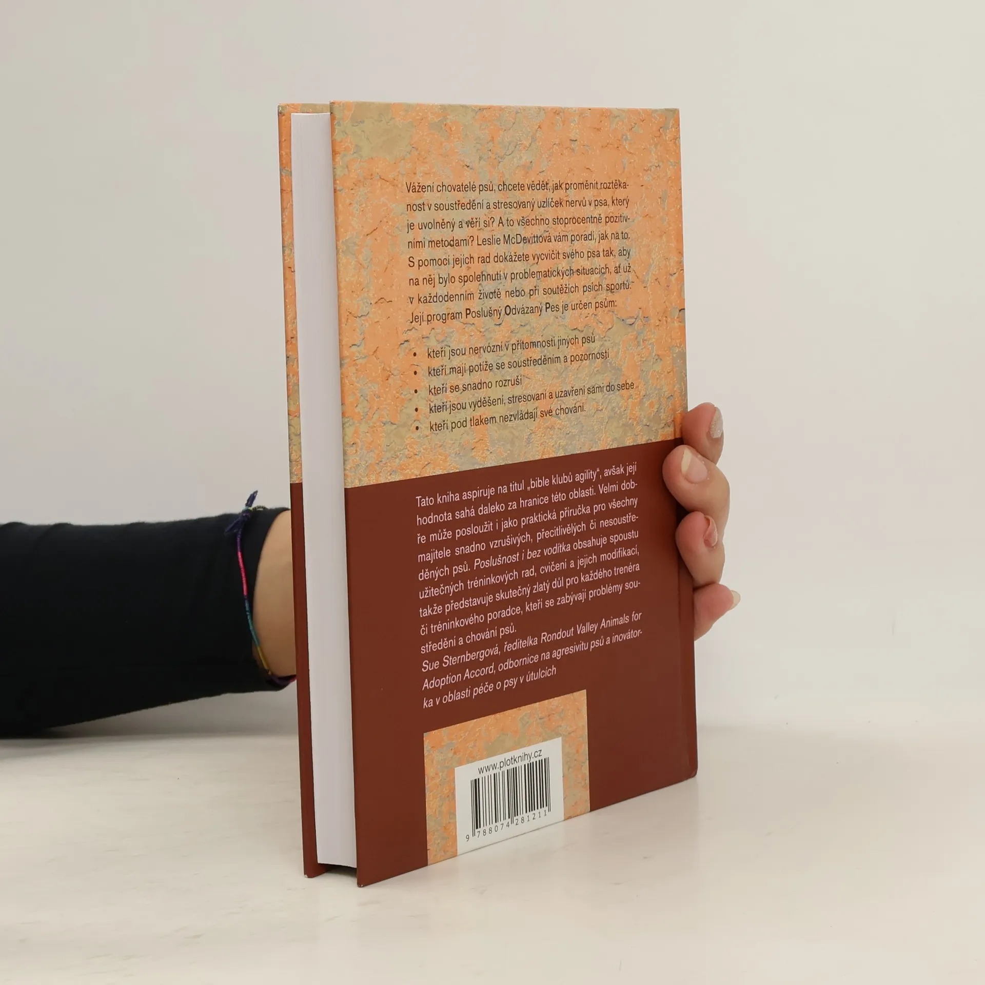 Vážení chovatelé psů, chcete vědět, jak proměnit roztěkanost v soustředění a stresovaný uzlíček nervů v psa, který je uvolněný a věří si? A to všechno stoprocentně pozitivními metodami? Leslie McDevittová vám poradí, jak na to. S pomocí jejích rad dokážete vycvičit svého psa tak, aby na něj bylo spolehnutí v problematických situacích, ať už ho stimulují nebo stresují, a to i bez vodítka!