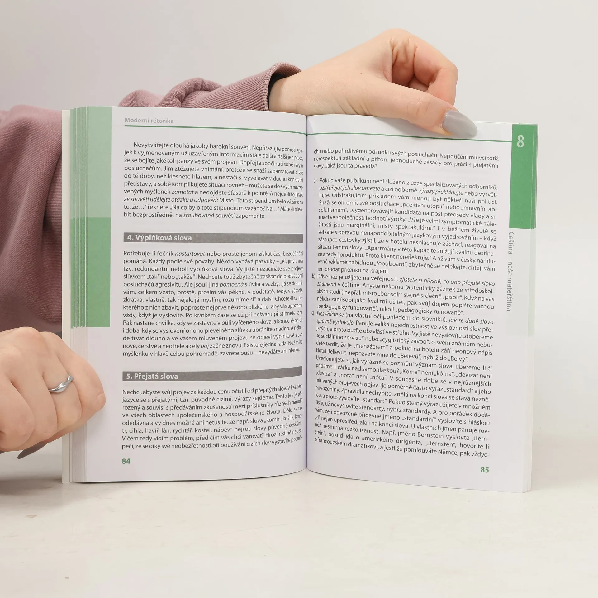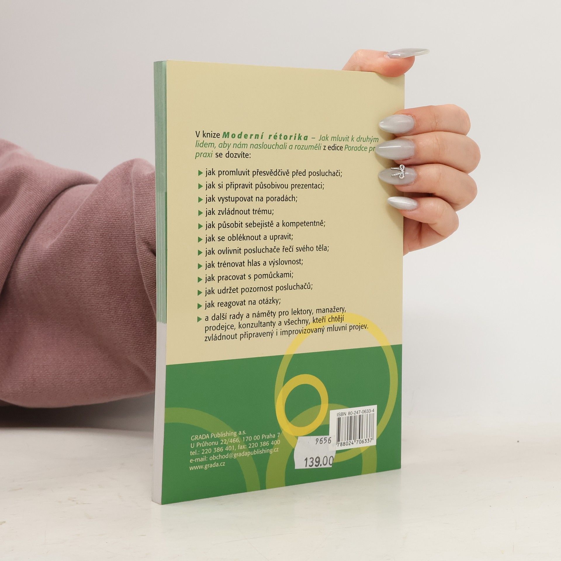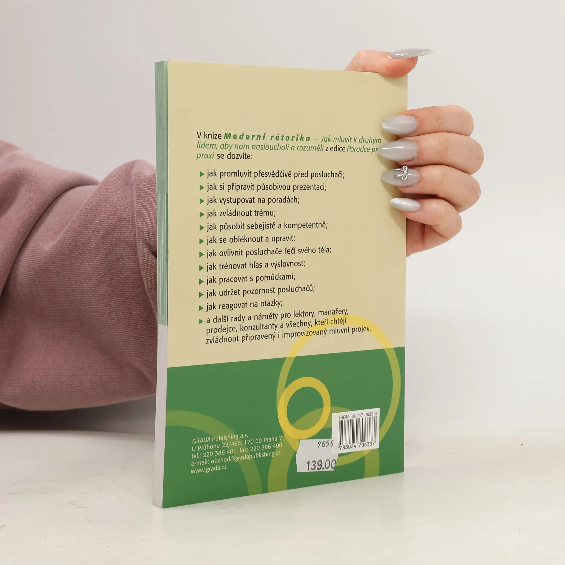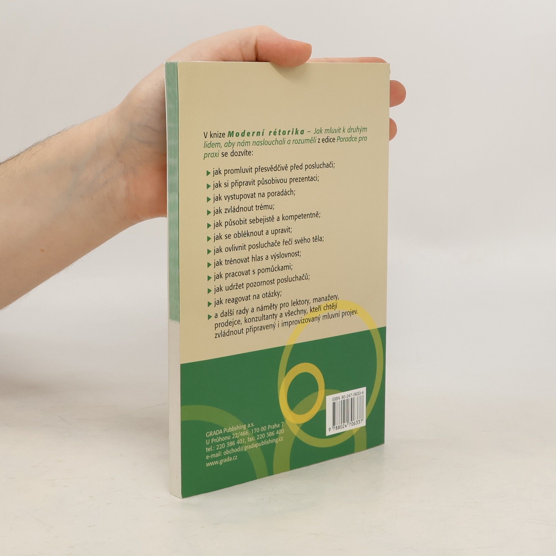 Kniha seznamuje se všemi prvky úspěšného přesvědčování od image a etikety mluvčího přes neverbální komunikaci po vlastní zřetelný a srozumitelný mluvený projev. Obsah publikace plně vystihuje její podnázev "Jak mluvit k druhým lidem, aby nám naslouchali a rozuměli", protože technikám vlastní rétoriky jsou věnovány z desíti kapitol pouze tři. Ty se zabývají hlasovým tréninkem, jazykovými prostředky spisovné češtiny a přípravou na vlastní projev. Kniha je doplněna Prezentačním desaterem a přehledem doporučené literatury.