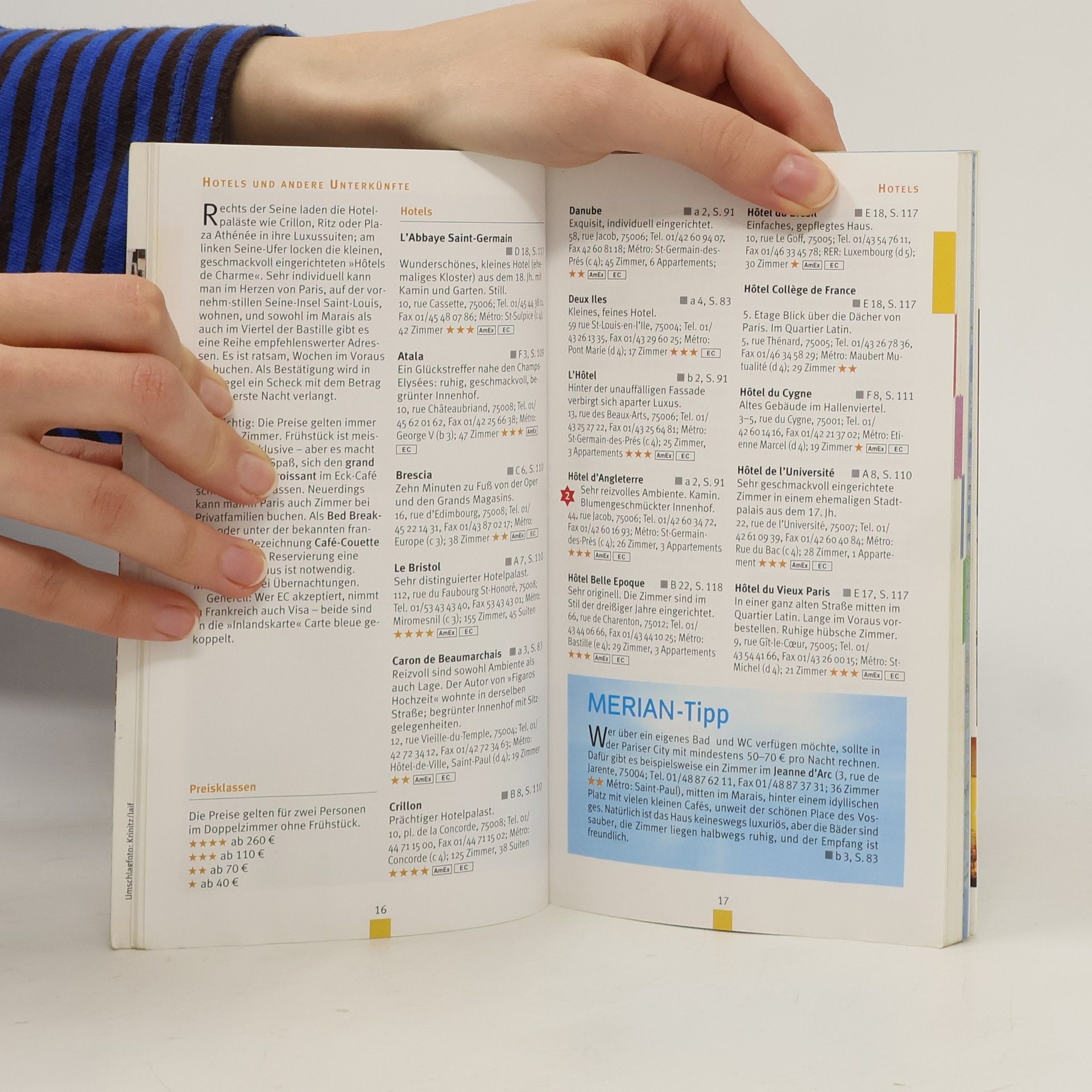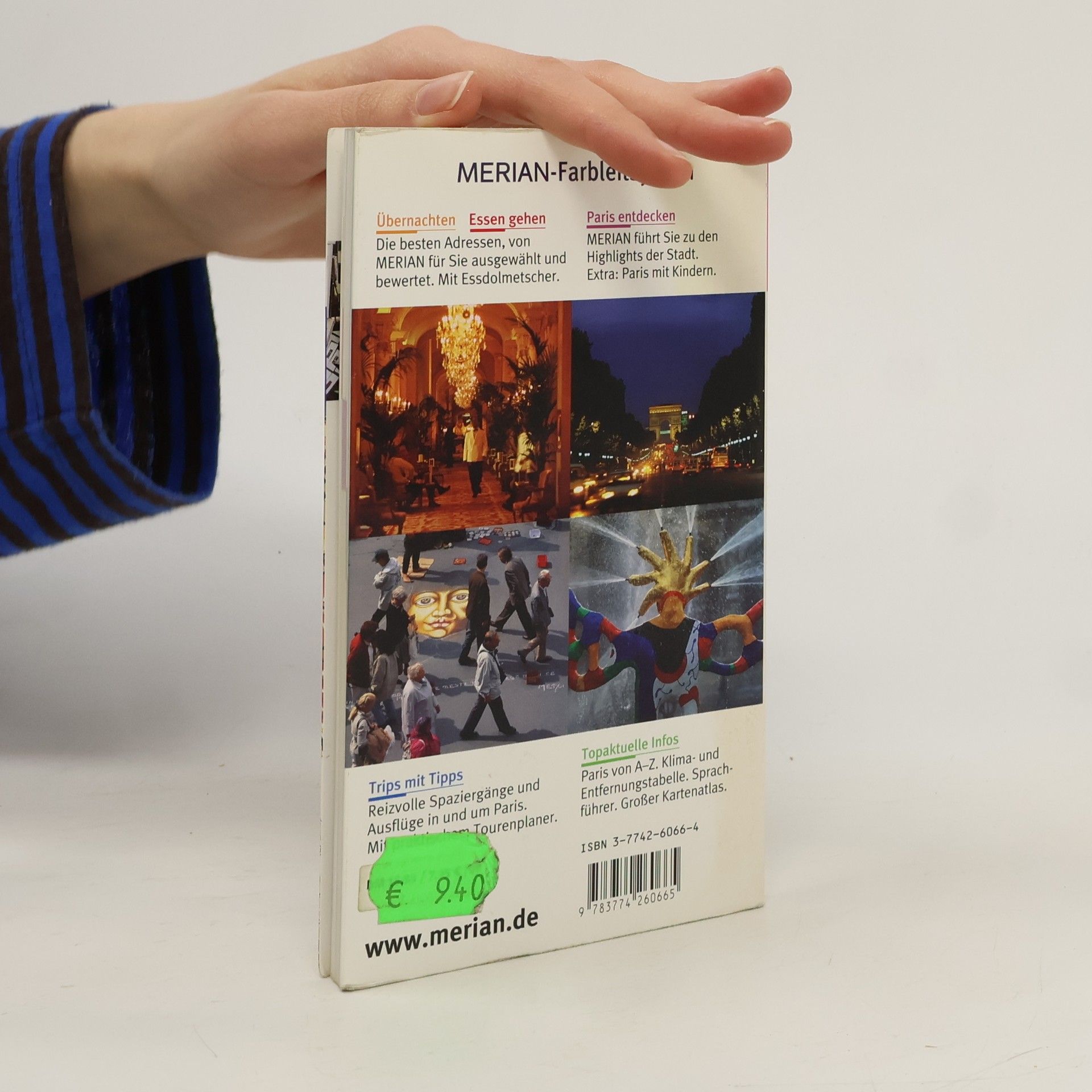 Mehrfach ausgezeichnet als bester Kompakt-Reiseführer, bietet dieser Guide jetzt einen herausnehmbaren Stadtplan und ein neues MERIAN-Quiz mit attraktiven Preisen. Paris, die faszinierende Stadt an der Seine, zieht jährlich tausende Besucher an. Sie vereint Größe, Tradition, Esprit und Weltläufigkeit. Der Reiseführer präsentiert die interessantesten Plätze und Sehenswürdigkeiten: den 50 m hohen Arc de Triomphe, das futuristische Centre Pompidou, den ikonischen Eiffelturm, den wunderschönen Jardin du Luxembourg und die beeindruckende Notre-Dame. Entdecken Sie bei Spaziergängen das ehemalige Adelsviertel Marais, das Künstlerviertel Montparnasse, das romantische Montmartre und das legendäre Saint-Germain-des-Prés, ein Treffpunkt der Intellektuellen. Der Guide enthält aktuelle Empfehlungen für Unterkünfte, Restaurants und Einkaufsmöglichkeiten. In den Rubriken MERIAN Top-Ten und MERIAN-Tipps finden Sie persönliche Insider-Informationen der Autorin. Mit etwa 55 Farbfotos, 12 Seiten Kartenatlas, einer Übersichtskarte, vier Detailplänen, einem Verkehrslinienplan sowie einem Sprachführer und Essdolmetscher ist dieser Reiseführer ein unverzichtbarer Begleiter für jeden Paris-Besucher.