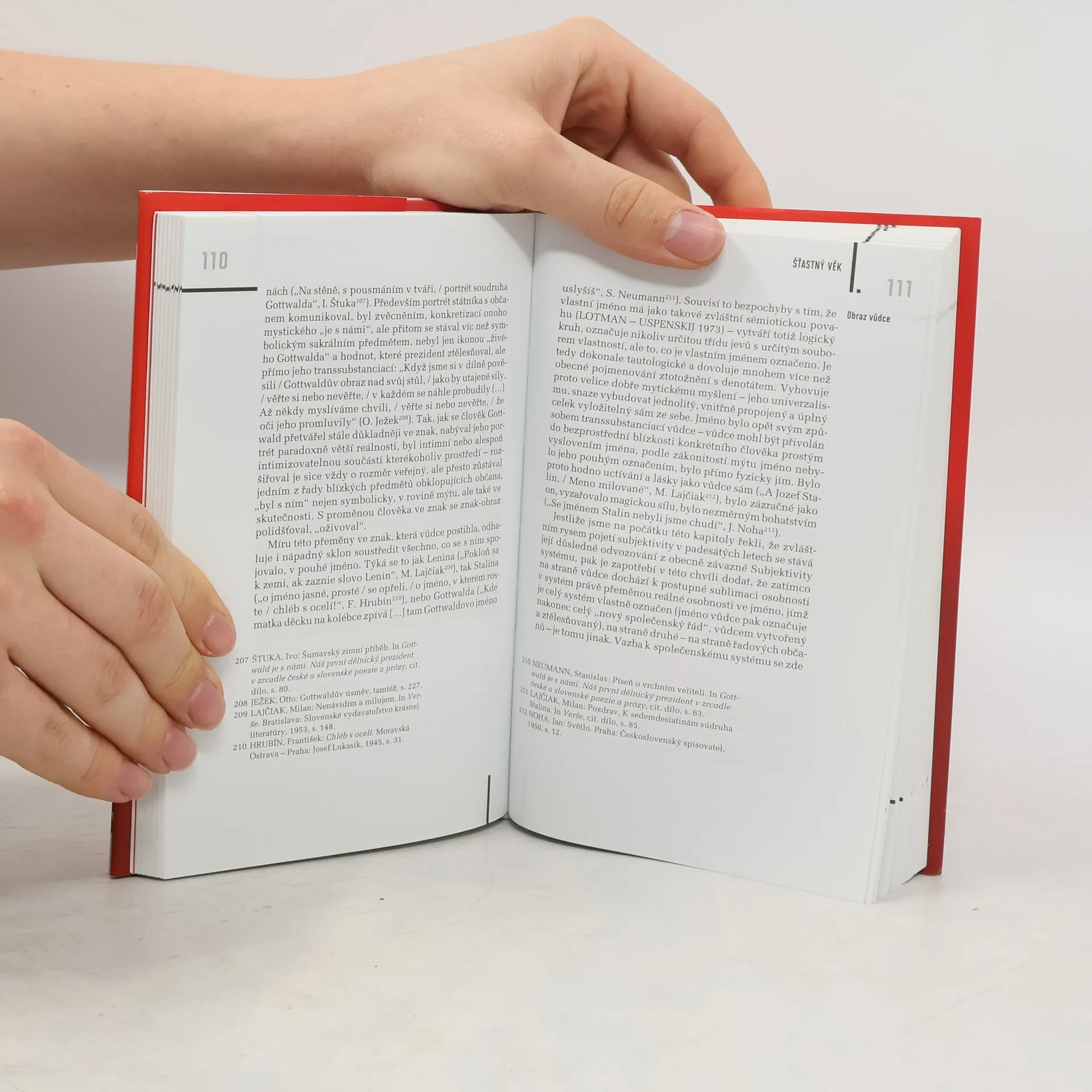 Sémiotické eseje analyzují klíčové symboly, emblémy a mýty české socialistické kultury z let 1948-1989. Základ knihy představuje práce Šťastný věk z roku 1992, ve které literární vědec Vladimír Macura analyzuje kulturu socialistického Československa. Zaměřuje se na ikonografii. Vysvětluje klíčové symboly, emblémy a mýty typické pro tehdejší dobu - ať už jde o kulty osobností, vzory hrdinů, socialistické pojetí domova, etikety či metra. Původní vydání Šťastného věku je zde rozšířeno i o obrazovou přílohu. Druhý oddíl knihy doplňuje problematiku šťastného věku o literárněhistorické studie - zachycení fungování literatury v totalitním režimu. Závěrečná stať pak sleduje užívání motivu továrny od 19. stol. až po jeho kulminaci v 50. letech 20. století. Knihu uzavírá stať T. Glance o literární práci V. Macury.