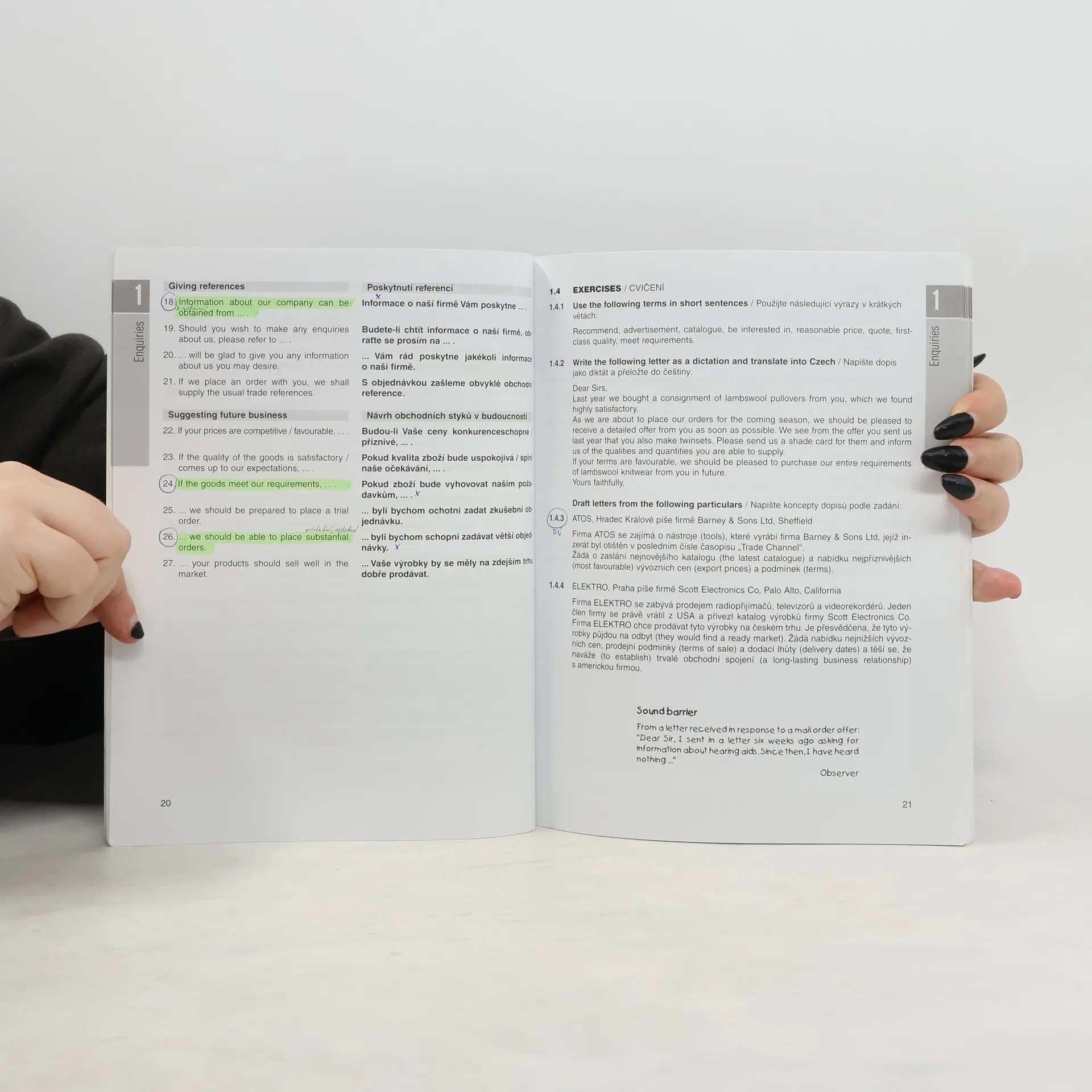 Seznámení se základy současné anglické obchodní korespondence. Kniha je zaměřená na: úvod a vysvětlení transakce, vzorové dopisy, vazby a fráze s překladem do češtiny, cvičení.
