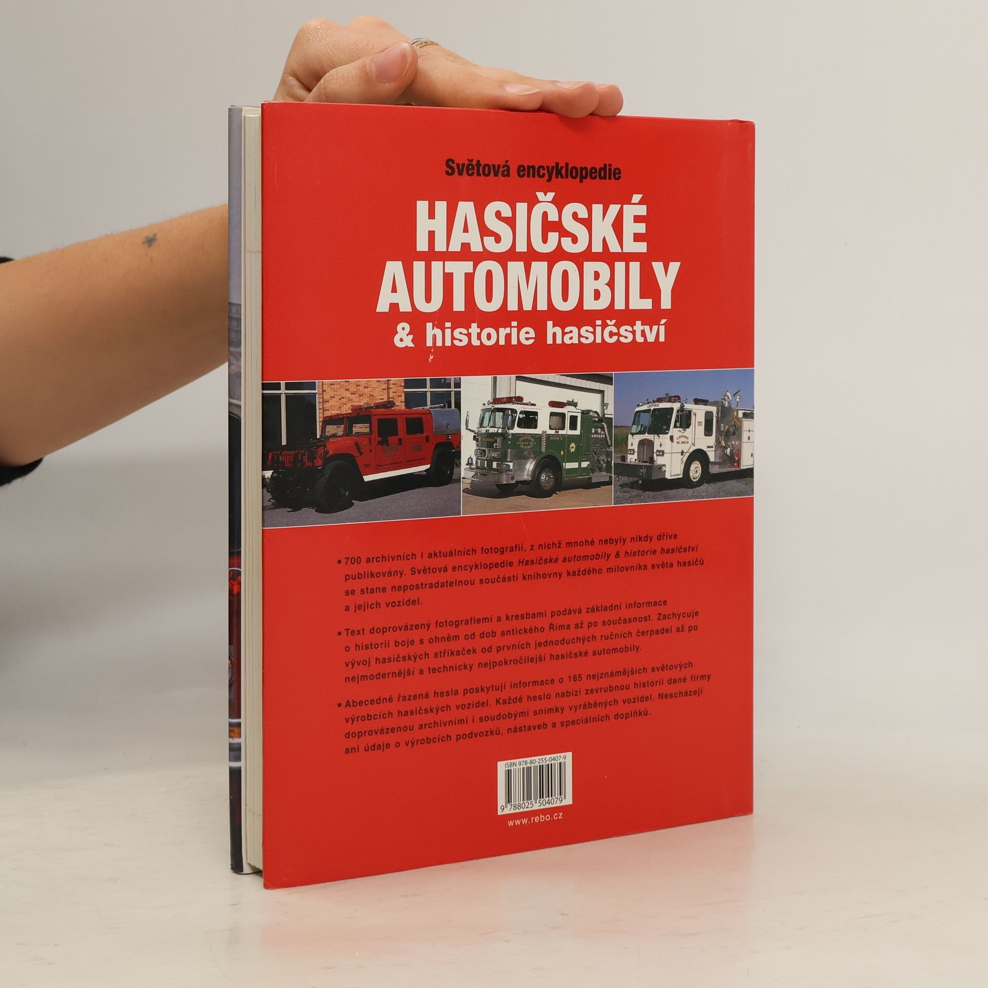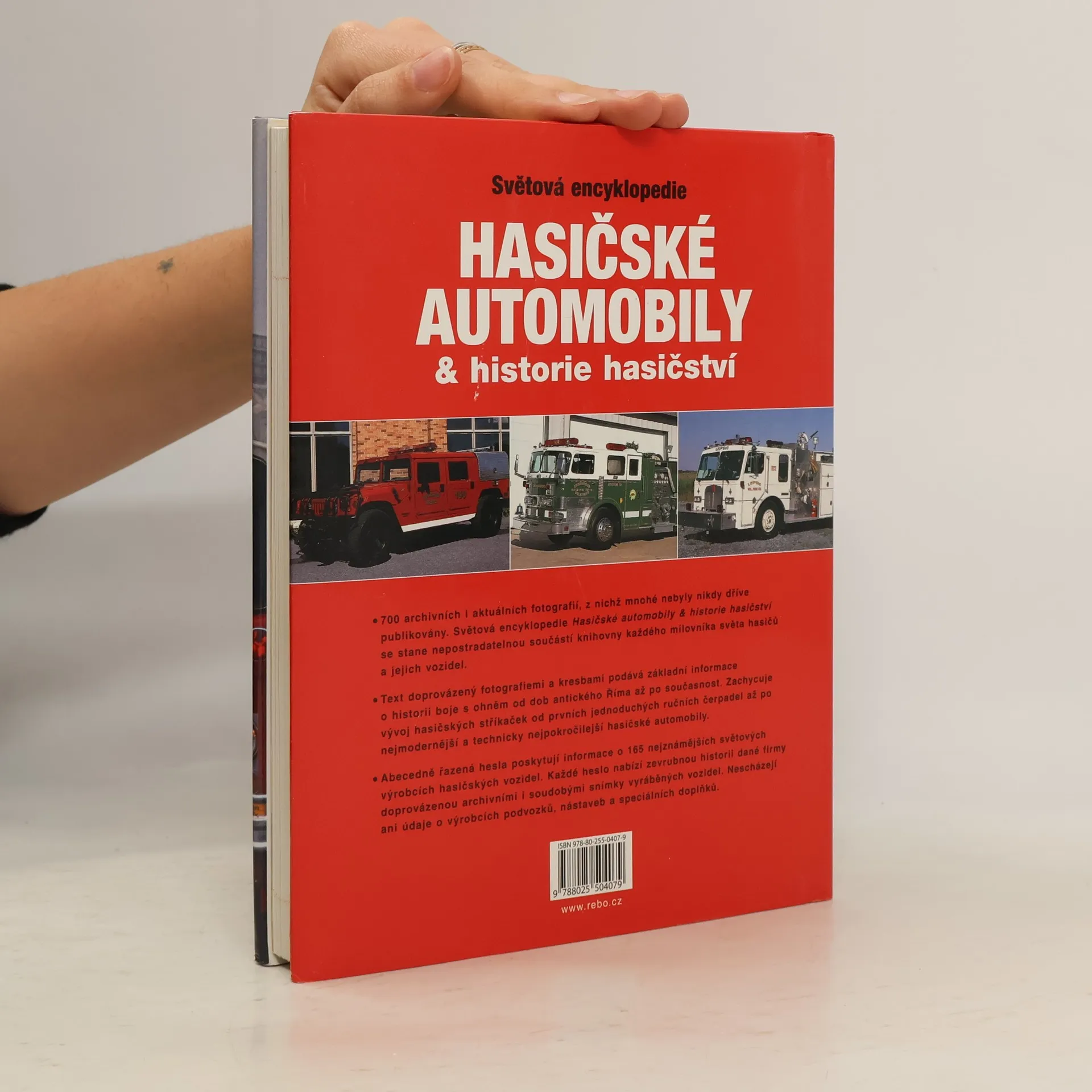 Text této obsáhlé publikace doprovázený více než sedmi stovkami kvalitních barevných, ale také černobílých dobových fotografií podává základní informace o historii boje s ohněm od dob antického Říma až po současnost. Zachycuje vývoj hasičských stříkaček od ručních čerpadel po nejmodernější hasičské automobily, představuje práci a vybavení současných hasičských jednotek a výrobce hasičských automobilů od A do Z.