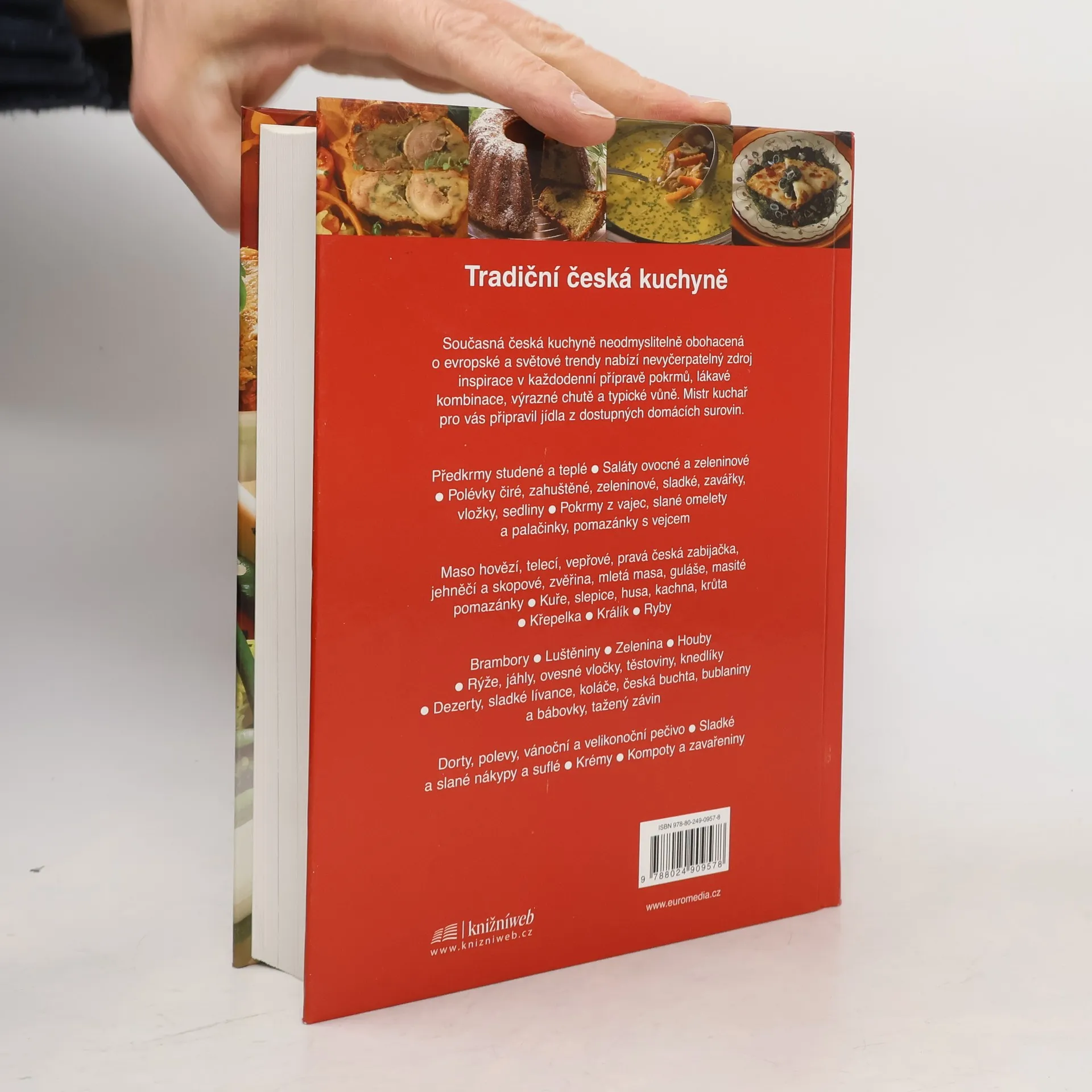 Tradiční česká kuchyně Současná česká kuchyně neodmyslitelně obohacená o evropské a světové trendy nabízí nevyčerpatelný zdroj inspirace v každodenní přípravě pokrmů, lákavé kombinace, výrazné chutě a typické vůně. Mistr kuchař pro vás připravil jídla z dostupných domácích surovin. Předkrmy studené a teplé Saláty ovocné a zeleninové Polévky čiré, zahuštěné, zeleninové, sladké, zavářky, vložky, sedliny Pokrmy z vajec, slané omelety a palačinky, pomazánky s vejcem Maso hovězí, telecí, vepřové, pravá česká zabijačka, jehněčí a skopové, zvěřina, mletá masa, guláše, masité pomazánky Kuře, slepice, husa, kachna, krůta Křepelka Králík Ryby Brambory Luštěniny Zelenina Houby Rýže, jáhly, ovesné vločky, těstoviny, knedlíky Dezerty, sladké lívance, koláče, česká buchta, bublaniny a bábovky, tažený závin Dorty, polevy, vánoční a velikonoční pečivo Sladké a slané nákypy a suflé Krémy kompoty a zavařeniny