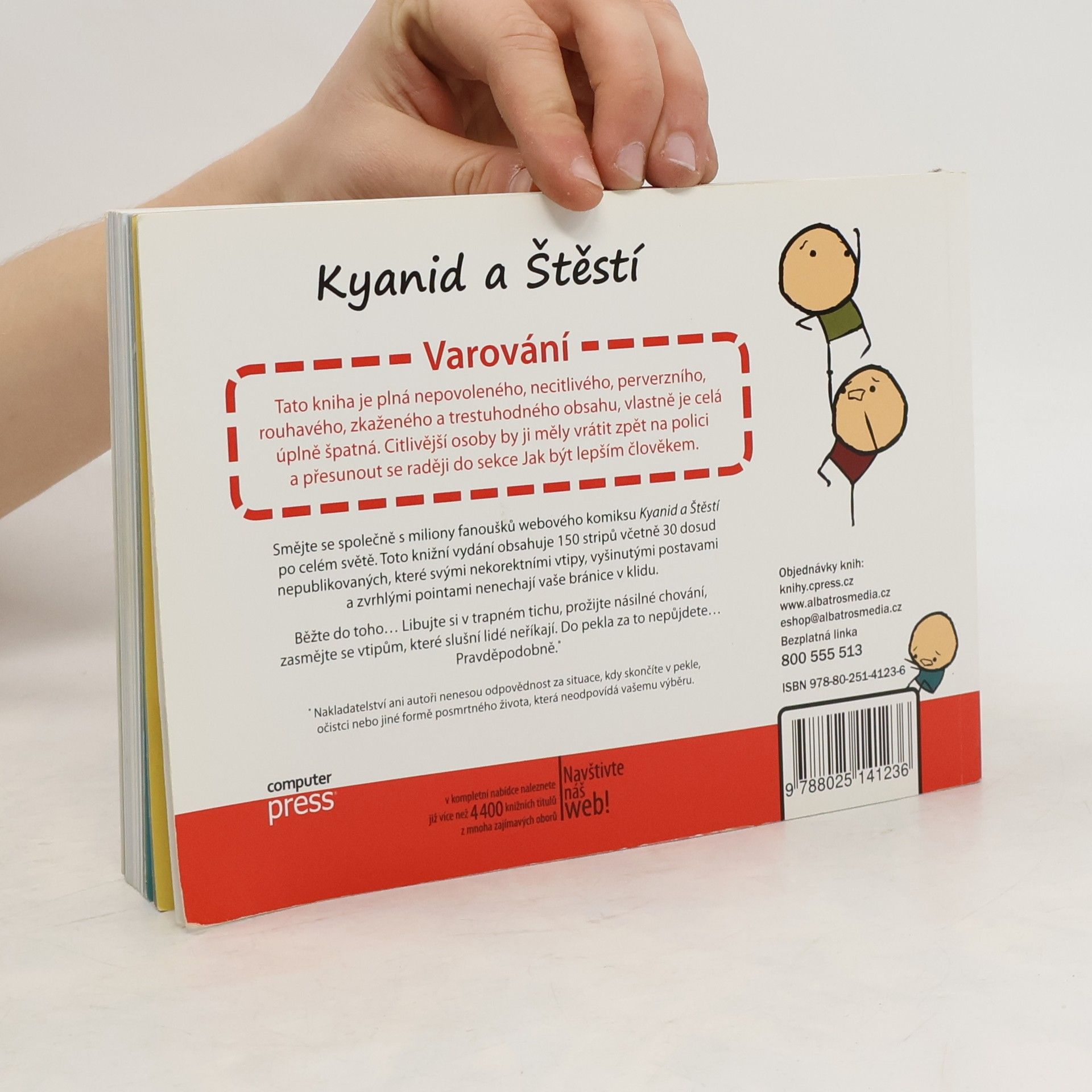 Smějte se společně s miliony fanoušků webového komiksu Cyanide & Happiness po celém světě. V tomto knižním vydání najdete 150 stripů včetně 30 dosud nepublikovaných, které svými nekorektními vtipy, vyšinutými postavami a zvrhlými pointami nenechají vaše bránice v klidu. Kniha není vhodná pro citlivější osoby, pravděpodobnost, že vás některý ze stripů urazí, je nebezpečně vysoká.