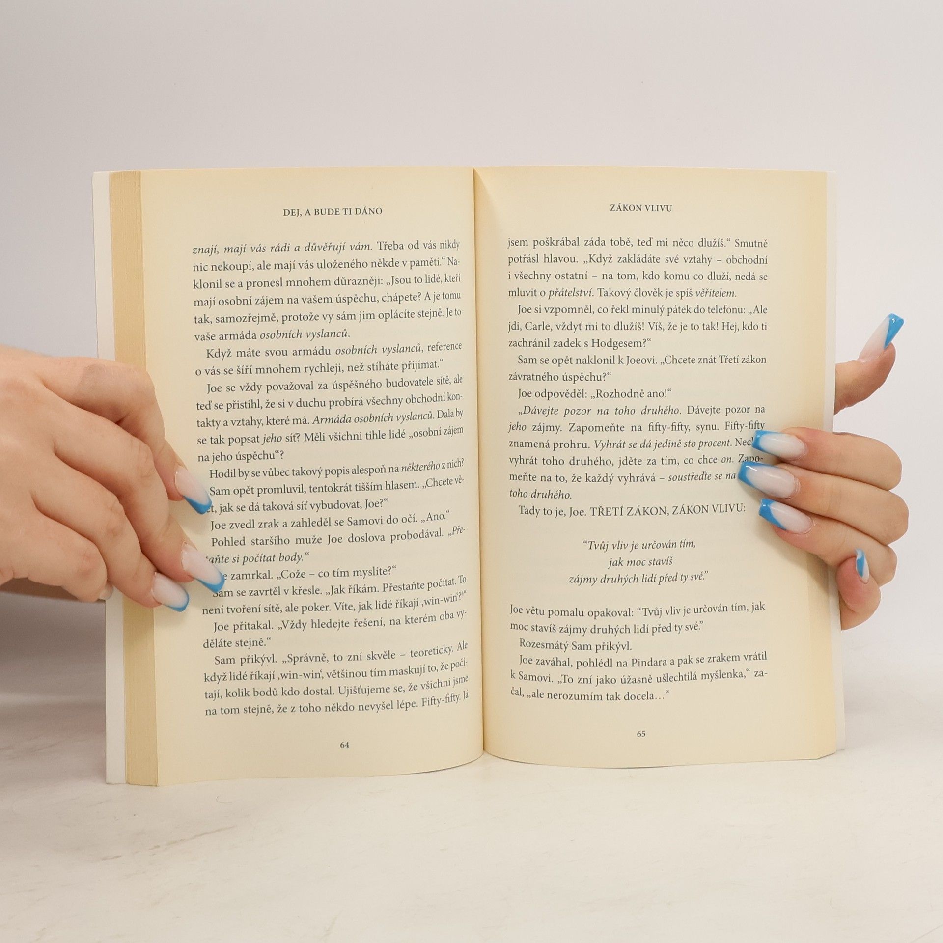 Kniha The Go – Giver Dej a bude ti dáno vypráví příběh o ambiciózním mladém muži jménem Joe, který touží po úspěchu. Joe je opravdový go-getter, ačkoli občas se mu zdá, že čím tvrději a rychleji pracuje, tím vzdálenější se jeho cíle zdají. A tak jednoho dne, když se zoufale snaží dotáhnout klíčový obchod na konci špatného čtvrtletí, vyhledá rady tajemného Pindara, legendárního konzultanta, kterému jeho známí říkají prostě Předseda. The Go – Giver Dej a bude ti dáno je ispirativní příběh, který vás zahřeje u srdce. Je předávaný s vtipem a elegancí a dává nový význam známému přísloví „Dej a bude ti dáno.“.