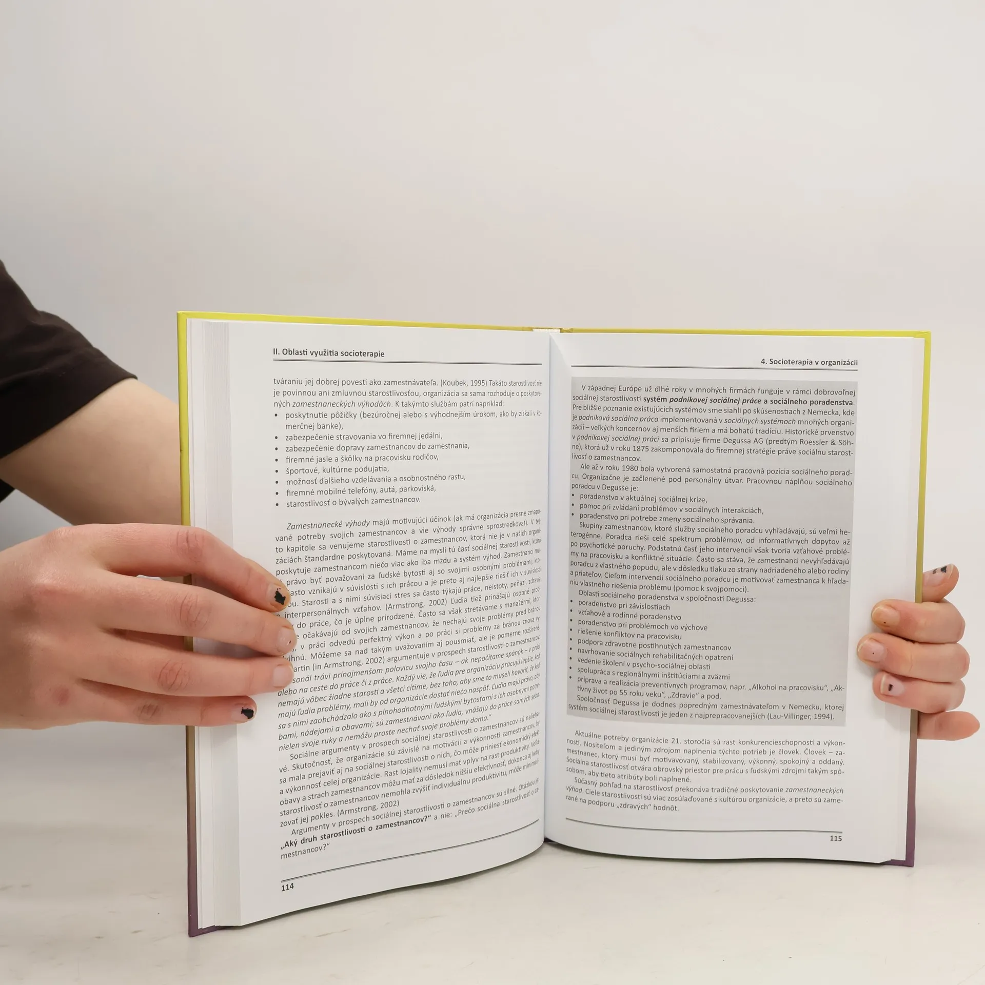 Kniha ponúka pohľady na viaceré základné oblasti, v ktorých je možné socioterapiu aplikovať a v ktorých môže veľmi účinne prispieť k riešeniu konfliktov, nefunkčných vzťahov a ohnísk napätia. V jednotlivých kapitolách sú zrozumiteľným jazykom rozoberané aplikácie socioterapie v sociálnej oblasti (detské domovy, resocializačné zariadenia atď.), v manažmente a firemných vzťahoch, v zdravotníctve, školstve a vzdelávaní a nepochybne zaujímavá je aj kapitola mapujúca socioterapiu v EÚ. Kniha je určená predovšetkým ľuďom pracujúcim v pomáhajúcich profesiách (sociálni pracovníci, vychovávatelia, sestry, ošetrovatelia a iní), no rovnako prínosná môže byť aj pre lekárov, psychológov a psychoterapeutov, právnikov, pedagógov, kňazov alebo laikov orientujúcich sa na prácu s ľuďmi.