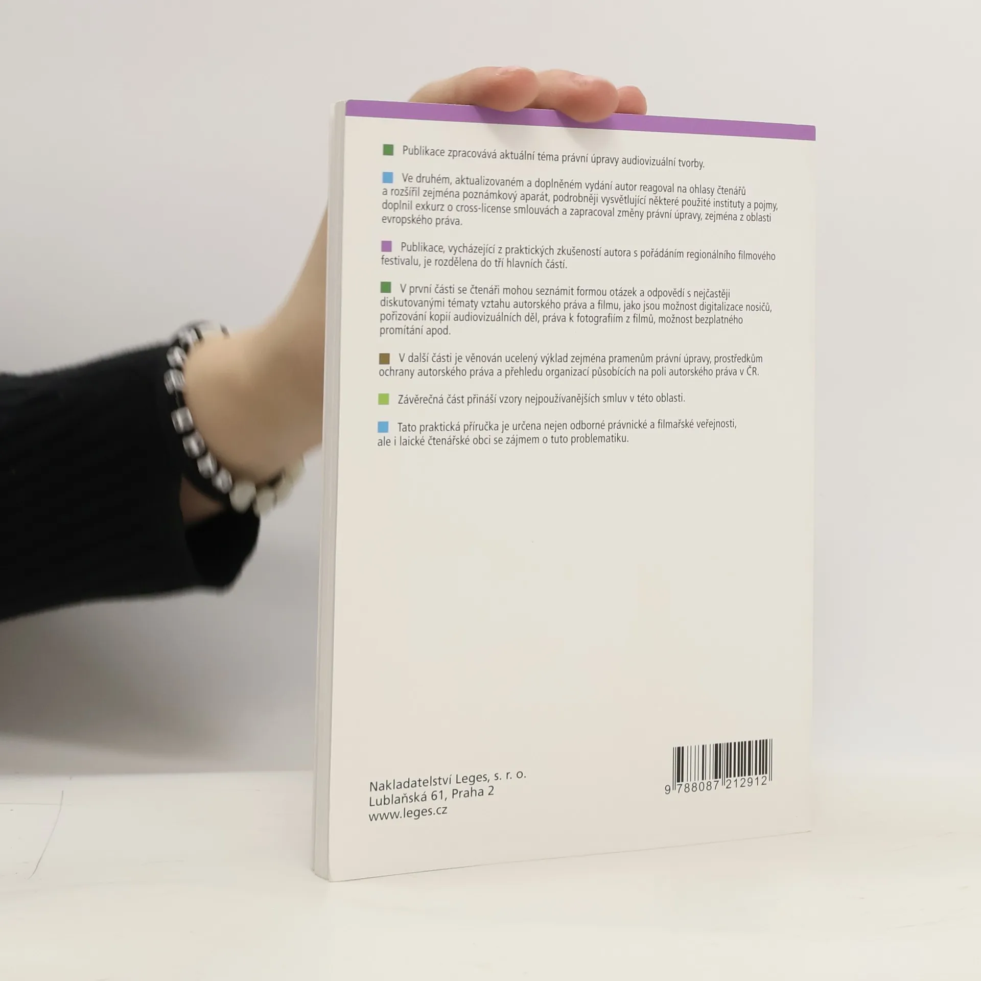 Publikace zpracovává aktuální téma právní úpravy audiovizuální tvorby. Ve druhém, aktualizovaném a doplněném vydání autor reagoval na ohlasy čtenářů a rozšířil zejména poznámkový aparát, podrobněji vysvětlující některé použité instituty a pojmy, doplnil exkurz o cross-license smlouvách a zapracoval změny právní úpravy, zejména z oblasti evropského práva. Publikace, vycházející z praktických zkušeností autora s pořádáním regionálního filmového festivalu, je rozdělena do tří hlavních částí. V první části se čtenáři mohou seznámit formou otázek a odpovědí s nejčastěji diskutovanými tématy vztahu autorského práva a filmu, jako jsou možnost digitalizace nosičů, pořizování kopií audiovizuálních děl, práva k fotografiím z filmů, možnost bezplatného promítání apod. V další části je ucelený výklad věnován zejména pramenům právní úpravy, prostředkům ochrany autorského práva a přehledu organizací působících na poli autorského práva v ČR. Závěrečná část přináší vzory nejpoužívanějších smluv v této oblasti. Tato praktická příručka je určena nejen odborné právnické a filmařské veřejnosti, ale i laické čtenářské obci se zájmem o tuto problematiku.