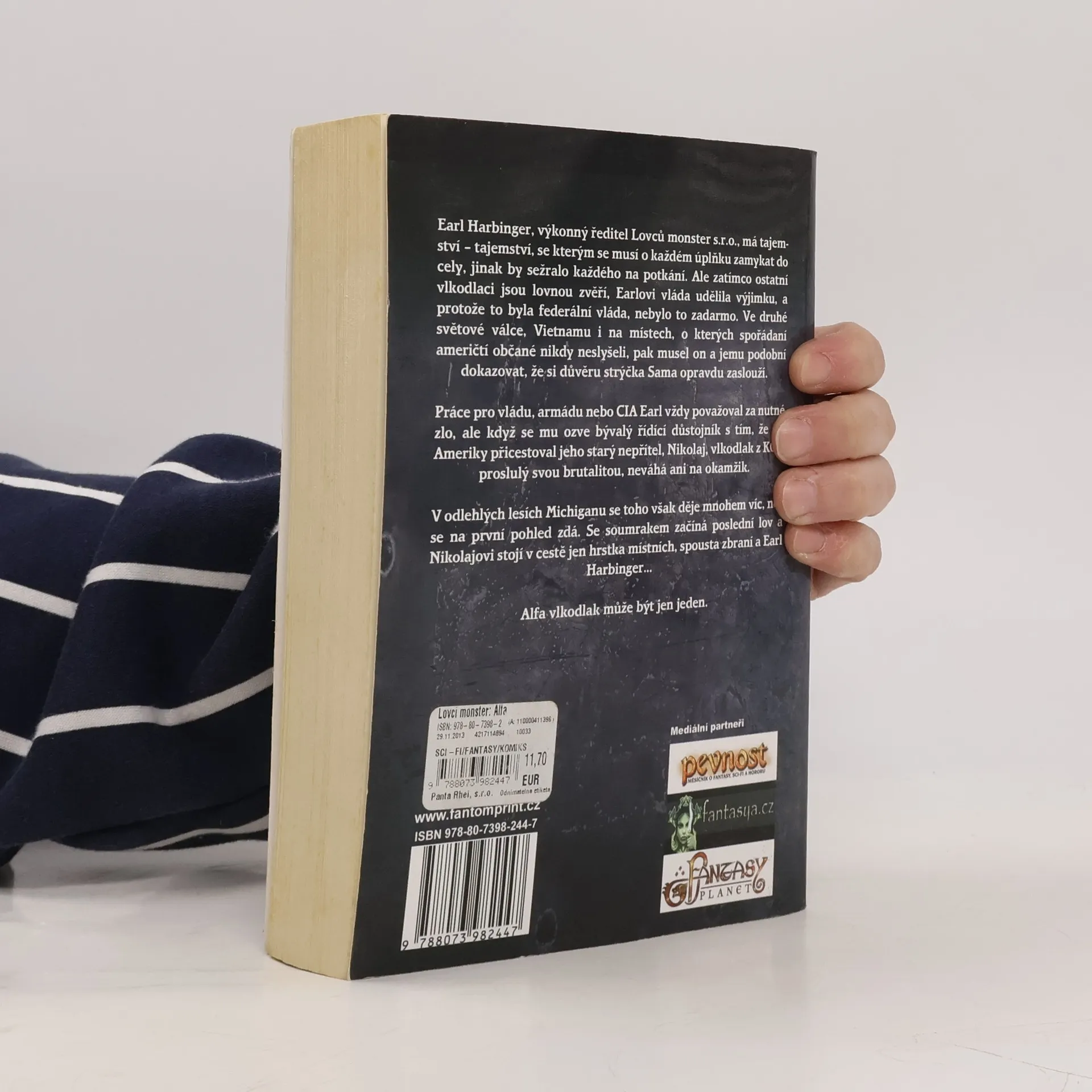 „Dvakrát mě povolali, abych sloužil svý zemi, vlastně třikrát, když počítám i časy, když jsem byl ještě mladej lidskej kluk… Guerillová válka se vede dost blbě, když se musíš o džungli dělit s vlkodlakem.“ Earl Harbinger, výkonný ředitel Lovců monster s.r.o., má tajemství – tajemství, se kterým se musí o každém úplňku zamykat do cely, jinak by sežralo každého na potkání. Ale zatímco ostatní vlkodlaci jsou lovnou zvěří, Earlovi vláda udělila výjimku, a protože to byla federální vláda, nebylo to zadarmo. Ve druhé světové válce, Vietnamu i na místech, o kterých spořádaní američtí občané nikdy neslyšeli, pak musel on a jemu podobní dokazovat, že si důvěru strýčka Sama opravdu zaslouží. Práce pro vládu, armádu nebo CIA Earl vždy považoval za nutné zlo, ale když se mu ozve bývalý řídící důstojník s tím, že do Ameriky přicestoval jeho starý nepřítel, vlkodlak z KGB proslulý svou brutalitou, neváhá ani na okamžik. V odlehlých lesích Michiganu se toho však děje mnohem víc, než se na první pohled zdá. Se soumrakem začíná poslední lov a v cestě mu stojí jen hrstka místních, spousta zbraní a Earl Harbinger, který tvrdohlavě odmítá převalit se na záda a hrát mrtvého. Alfa vlkodlak může být jeden.