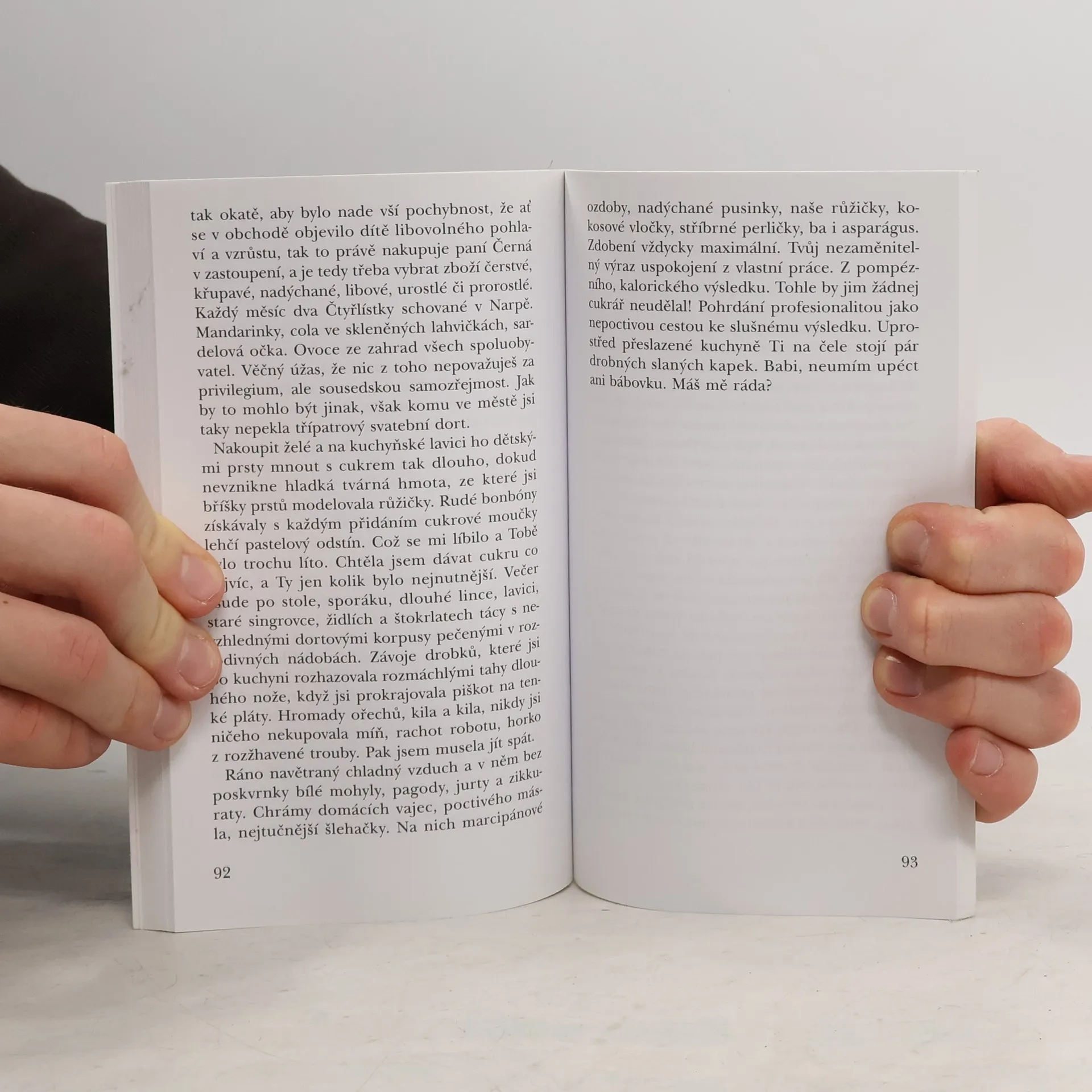 Druhá kniha autorky románu Hruškadóttir (2008), jednoho z nejúspěšnějších prozaických debutů posledních let, oceněného Cenou Jiřího Ortena. Ani deník, ani vzpomínky, ani obrázky ze života. Drásavá elegie o ztrátě města, domu, pokoje; babičky, s níž člověk sdílí tvář. Román dosud nenarozených dětí a už narozených dětí a první zpovědi a tetování na ruce. Příběh malé holčičky, která se bojí, i když už to je dávno žena.