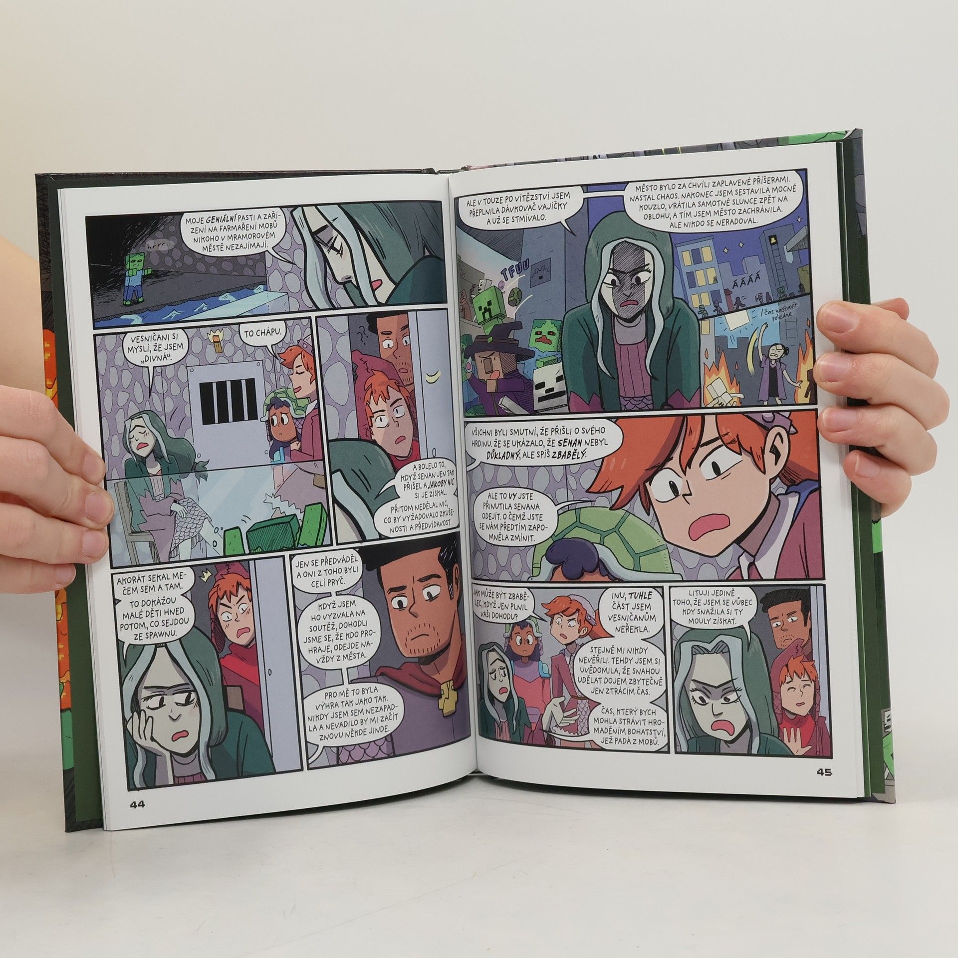 Vstupte do Overworldu s druhým dílem dobrodružného příběhu Chodí wither okolo ze světa nejprodávanější videohry – Minecraftu! Poté, co dvojčata Cahira a Orion zachránila svého učitele z břicha withera, obrátila pozornost k vyřešení záhady kletby své nové kamarádky, která přitahuje nepřátelské příšery. Společně musí vyhledat Senanovu bývalou protivnici, čarodějnici, která snad dokáže Atriinu kletbu vyléčit. Věci ale nejsou vždy takové, jaké se zdají. Čarodějnice má krásný dům s úžasnou kočičí fontánou, ale v podzemí skrývá tajemství: farmu na moby! Dvojčata se seznamují s městským ruchem a spustí řetěz událostí, který povede až k zombie katastrofě. Dokážou zachránit město i bezradné vesničany? Druhý ze tří vzrušujících příběhů ze světa Minecraftu!
