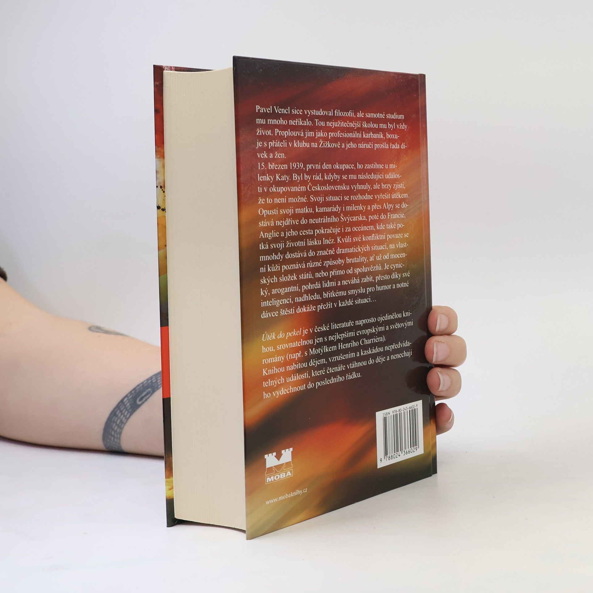 Pavel Vencl sice vystudoval filozofii, ale samotné studium mu mnoho neříkalo. Tou nejužitečnější školou mu byl vždy život. Proplouvá jím jako profesionální karbaník, boxuje s přáteli v klubu na Žižkově a jeho náručí prošla řada dívek. 15. březen 1939, první den okupace, ho zastihne u milenky Katy. Byl by rád, kdyby se mu následující události v okupovaném Československu vyhnuly, ale brzy zjistí, že to není možné. Svoji situaci se rozhodne vyřešit útěkem. Opustí svoji matku, kamarády i milenky a přes Alpy se dostává nejdříve do neutrálního Švýcarska, poté do Francie, Anglie a jeho cesta pokračuje i za oceánem, kde také potká svoji životní lásku Inéz. Kvůli své konfliktní povaze se mnohdy dostává do značně dramatických situací, na vlastní kůži poznává různé způsoby brutality, ať už od mocenských složek států, nebo přímo od spoluvězňů. Je cynický, arogantní, pohrdá lidmi a neváhá zabít, přesto díky své inteligenci, nadhledu, břitkému smyslu pro humor a notné dávce štěstí dokáže přežít v každé situaci… Útěk do pekel je v české literatuře naprosto ojedinělou knihou, srovnatelnou jen s nejlepšími evropskými a světovými romány. Knihou nabitou dějem, vzrušením a kaskádou nepředvídatelných událostí, které čtenáře vtáhnou do děje a nenechají ho vydechnout do posledního řádku.