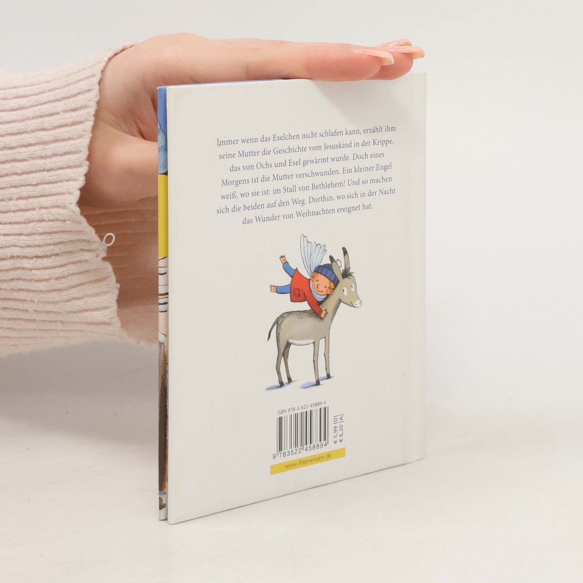 Otfried Preußlers Weihnachtsmärchen im Miniformat, für Kinder ab 4 Jahren. Als das Eselchen eines Morgens aufwacht, ist seine Mutter verschwunden! Aber zum Glück bleibt es nicht lange allein. Es bekommt Besuch von einem kleinen Engel, der weiß: Die Mutter ist beim Jesuskind, an der Krippe im Stall. Zusammen machen sich das Eselchen und der kleine Engel auf den Weg und laden alle ein, sie zu begleiten: Die Kinder, den Hirten mit seinen Schafen, die Bäckersfamilie, die Frau von der Würstchenbude und auch den Polizeiwachtmeister – sie alle schließen sich an und erleben gemeinsam das Wunder der Weihnacht.