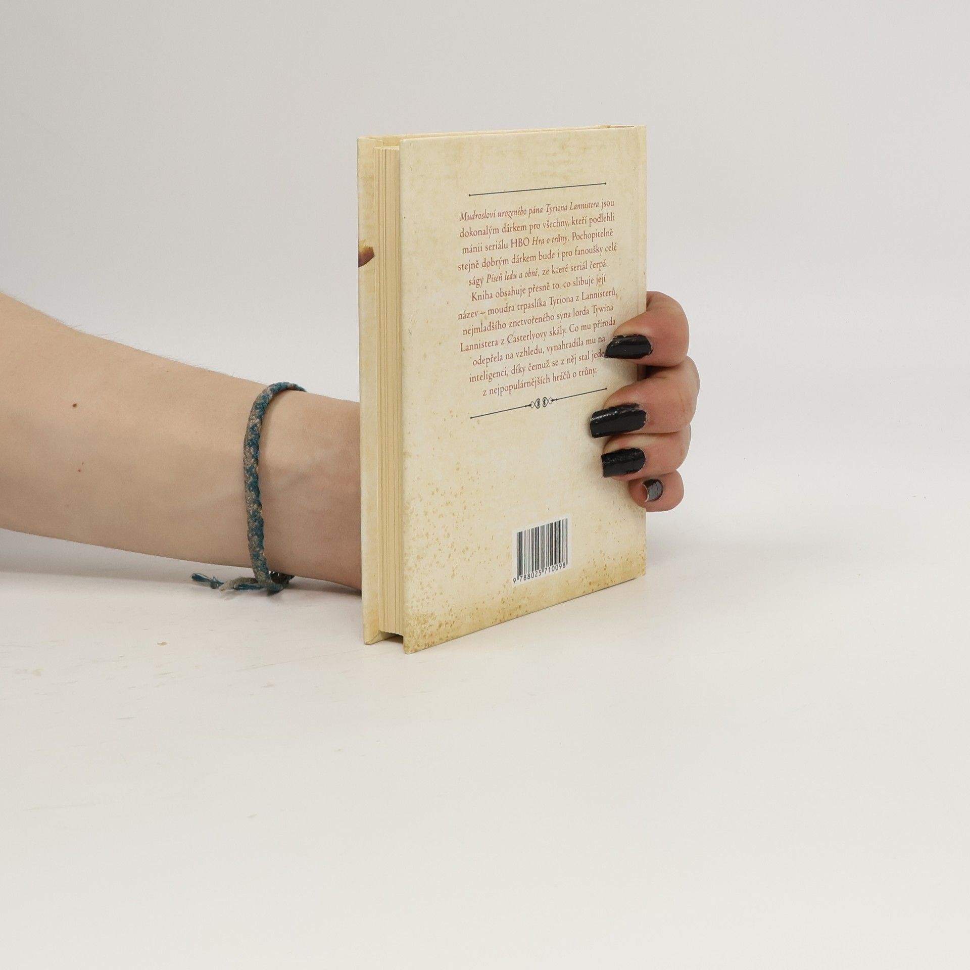Mudrosloví urozeného pána Tyriona Lannistera jsou dokonalým dárkem pro všechny, kteří podlehli mánii seriálu HBO Hra o trůny. Pochopitelně stejně dobrým dárkem bude i pro fanoušky celé ságy Píseň ledu a ohně G. R. R. Martina, ze které seriál čerpá. Kniha obsahuje přesně to, co slibuje její název – moudra trpaslíka Tyriona z Lannisterů, nejmladšího znetvořeného syna lorda Tywina Lannistera z Casterlyovy skály. Co mu příroda odepřela na vzhledu, vynahradila mu na inteligenci, díky čemuž se z něj stal jeden z nejpopulárnějších hráčů o trůny. Jeho seriálová i knižní postava má po celém světě miliony fanoušků, čehož důkazem je tato sbírka jeho neotřelých myšlenek a názorů.