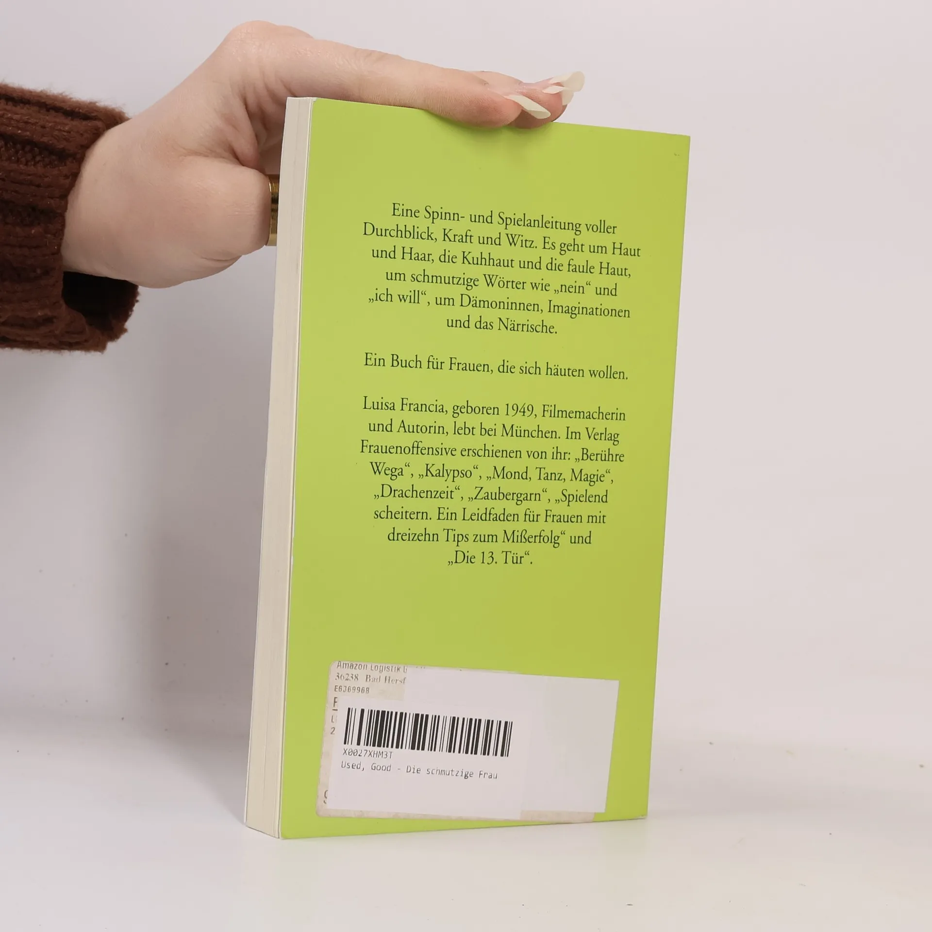Eine Spinn- und Spielanleitung voller Durchblick, Kraft und Witz. Es geht um Haut und Haar, die Kuhhaut und die faule Haut, um schmutzige Wörter wie "nein" und "ich will", um Dämoninnen, Imaginationen und das Närrische.Ein Buch für Frauen, die sich häuten wollen.
