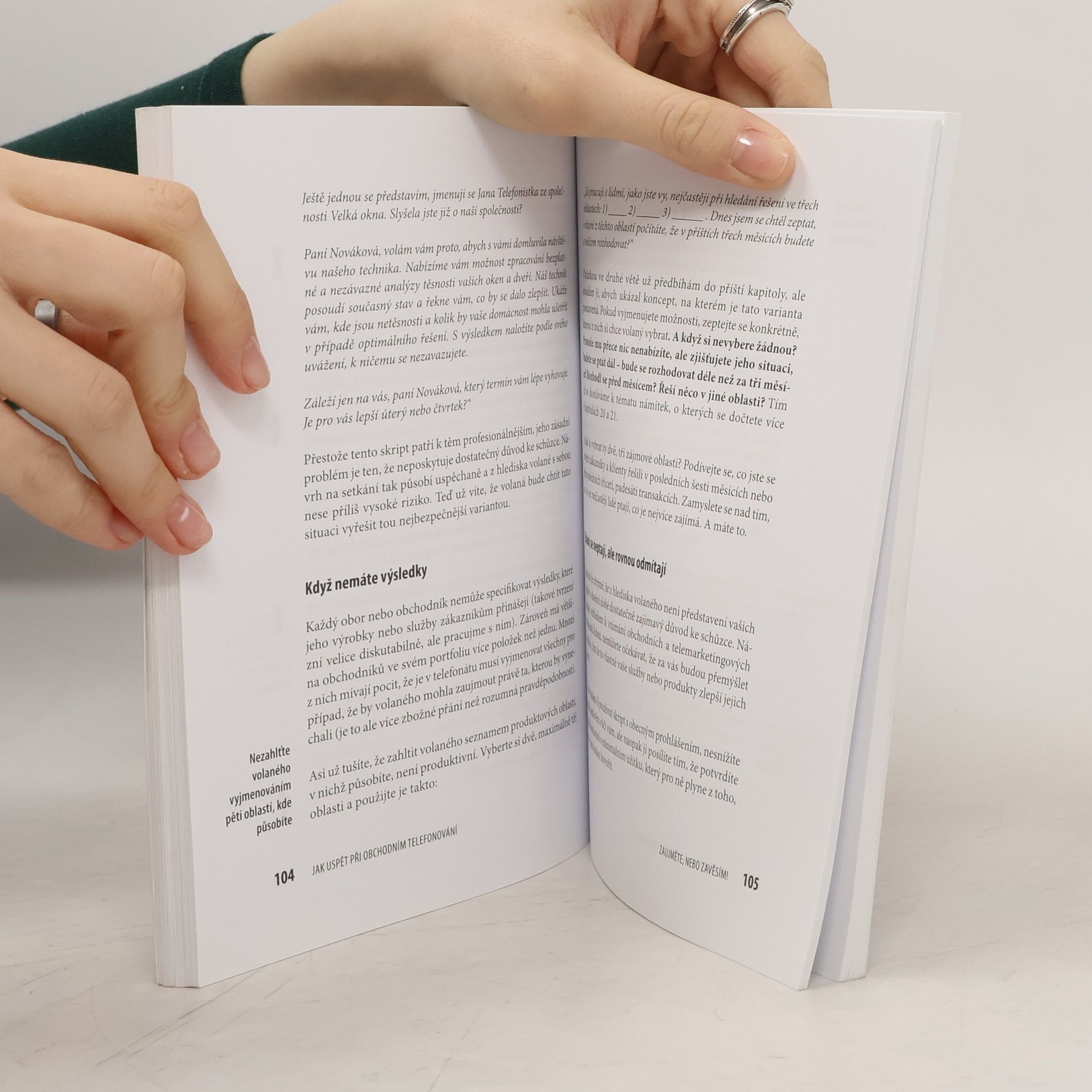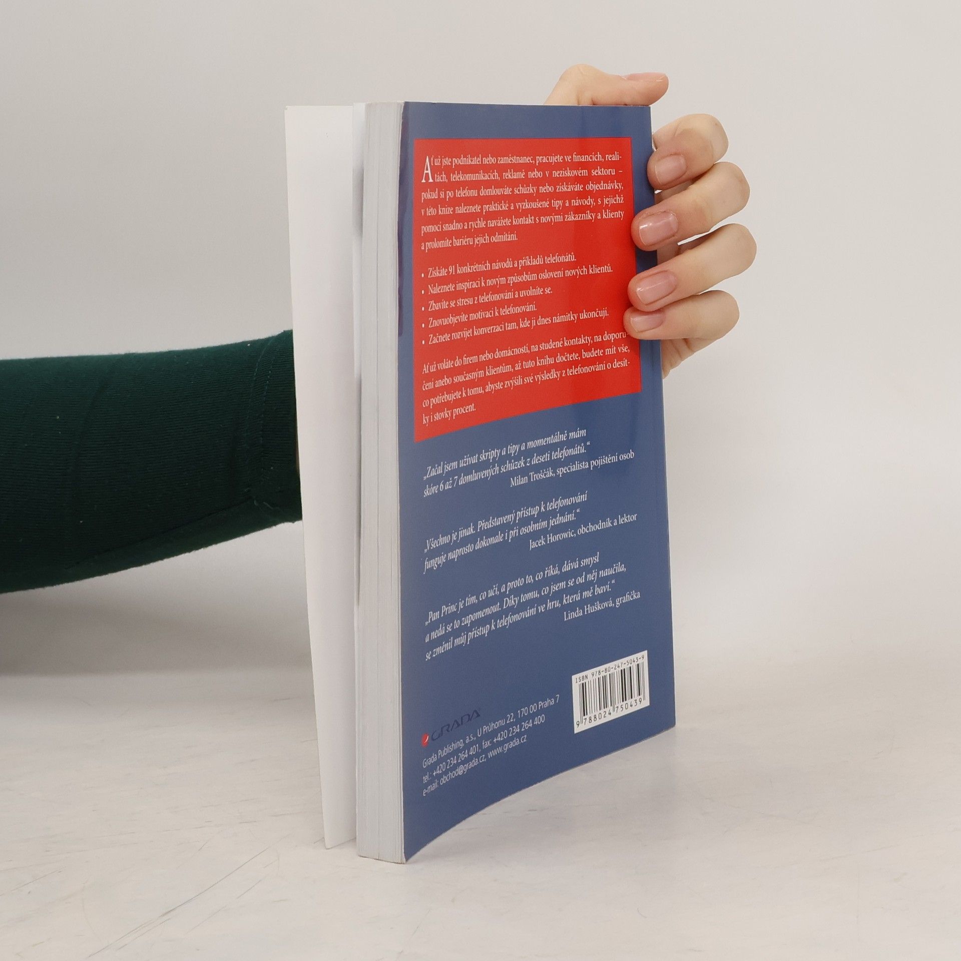 Ať už jste podnikatel nebo zaměstnanec, pracujete ve financích, realitách, telekomunikacích, reklamě nebo v neziskovém sektoru – pokud si po telefonu domlouváte schůzky nebo získáváte objednávky, v této knize naleznete praktické a vyzkoušené tipy a návody, s jejichž pomocí snadno a rychle navážete kontakt s novými zákazníky a klienty a prolomíte bariéru jejich odmítání. * Získáte 91 konkrétních návodů a příkladů telefonátů. * Naleznete inspiraci k novým způsobům oslovení nových klientů. * Zbavíte se stresu z telefonování a uvolníte se. * Znovuobjevíte motivaci k telefonování. * Začnete rozvíjet konverzaci tam, kde ji dnes námitky ukončují. Ať už voláte do firem nebo domácností, na studené kontakty, na doporučení anebo současným klientům, až tuto knihu dočtete, budete mít vše, co potřebujete k tomu, abyste zvýšili své výsledky z telefonování o desítky i stovky procent.