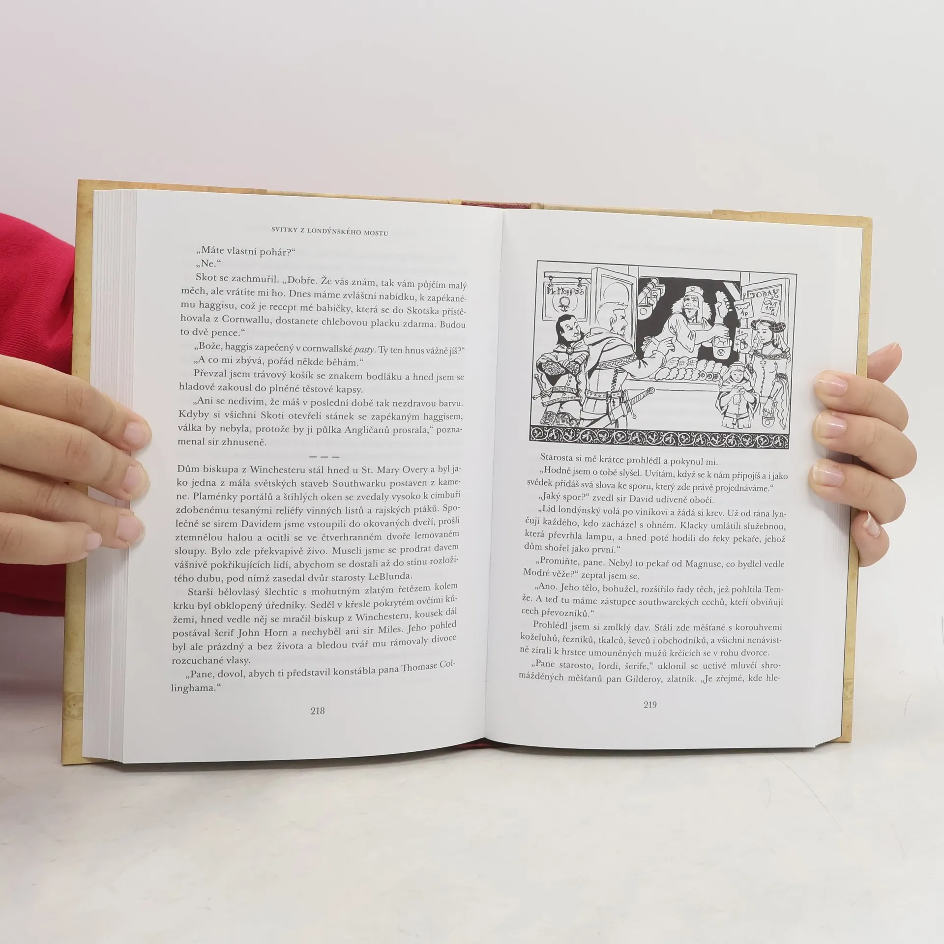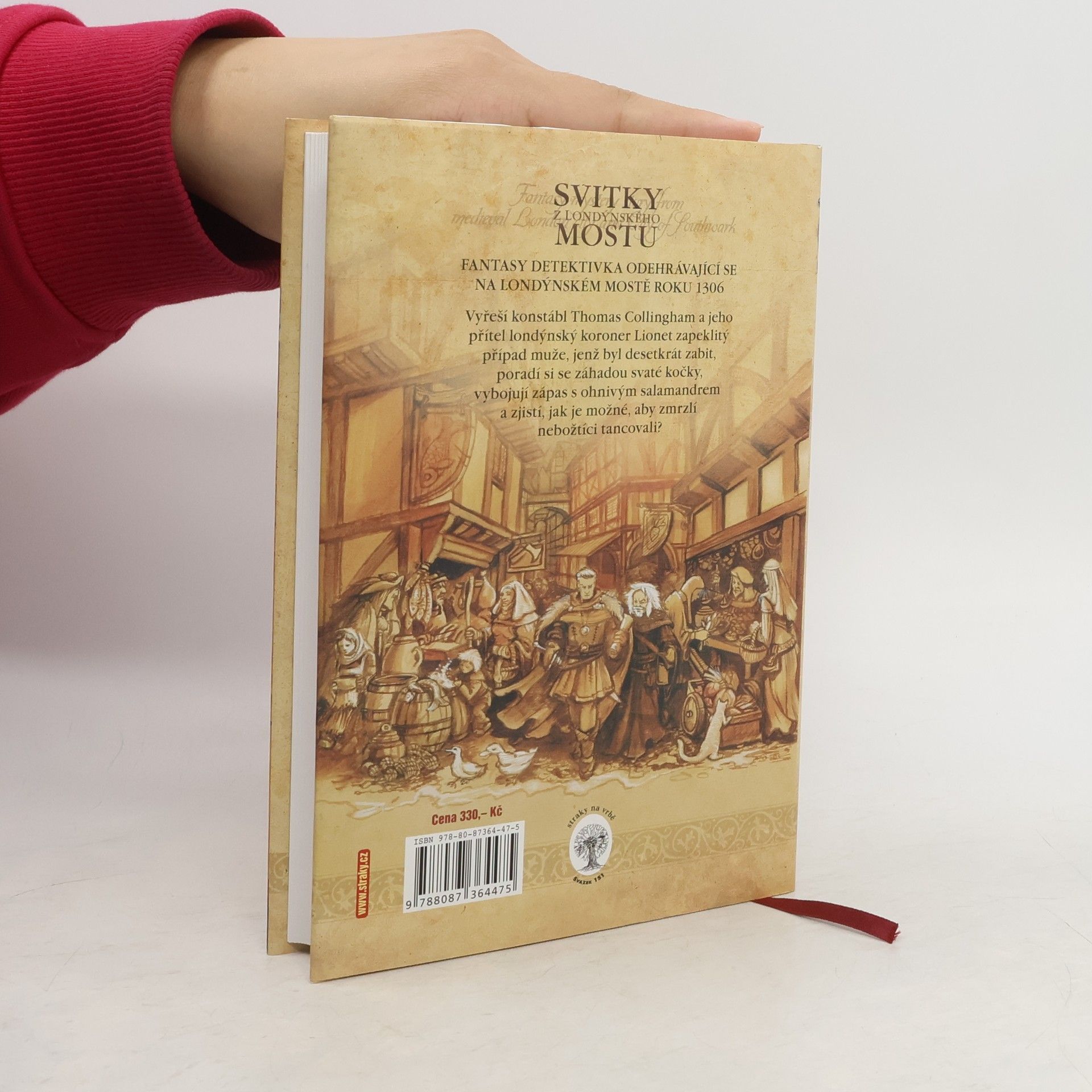 Lehce humorná detektivka s fantasy prvky odehrávající se na londýnském mostě roku 1306. Na této monumentální stavbě připomínající svérázné město se kromě nekonečných davů pocestných vyskytují i duchové, rozličná tajemná stvoření a samozřejmě lapkové, podvodníci a vrazi. Vyřeší londýnský konstábl Thomas Collingham a jeho přítel koroner Lionet zapeklitý případ muže, který byl zabit desetkrát, poradí si s případem svaté kočky, vybojují zápas s ohnivým salamandrem a zjistí, jak je možné, aby nebožtíci tancovali? První vydání. -- zdroj: www.legie.info --