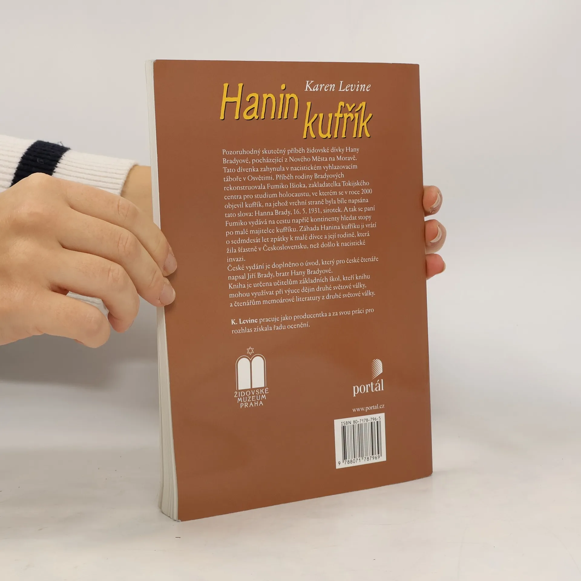 Příběh dívky, která se nevrátila. Vyprávění o moravské židovské dívce Haně Bradyové, která byla zavražděna v Osvětimi pro svůj židovský původ. V knížce se střídají kapitoly o šťastném dětství Hany a Jiřího Bradyových v Novém Městě na Moravě i o jejich deportaci do Terezína a Osvětimi s kapitolami o pátrání Tokijského centra pro studium holocaustu po osudech majitelky dětského kufříku, který byl tokijskému centru zapůjčen z osvětimského muzea. Publikace je provázena fotografiemi z tokijského centra a snímky z rodinného alba přeživšího Hanina bratra Jiřího. Podle předmluvy je kniha určena učitelům základních škol, kteří ji mohou využívat při výuce dějin druhé světové války.