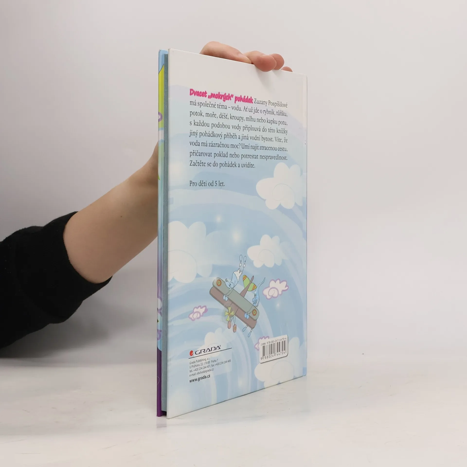 Dvacet "mokrých" pohádek Zuzany Pospíšilové má společné téma - vodu. Ať už jde o rybník, tůňku, potok, moře, déšť, kroupy, mlhu nebo kapku potu, s každou podobou vody připlouvá do této knížky jiný pohádkový příběh a jiná vodní bytost. Víte, že voda má zázračnou moc? Umí najít ztracenou cestu, přičarovat poklad nebo potrestat nespravedlnost. Začtěte se do pohádek a uvidíte.