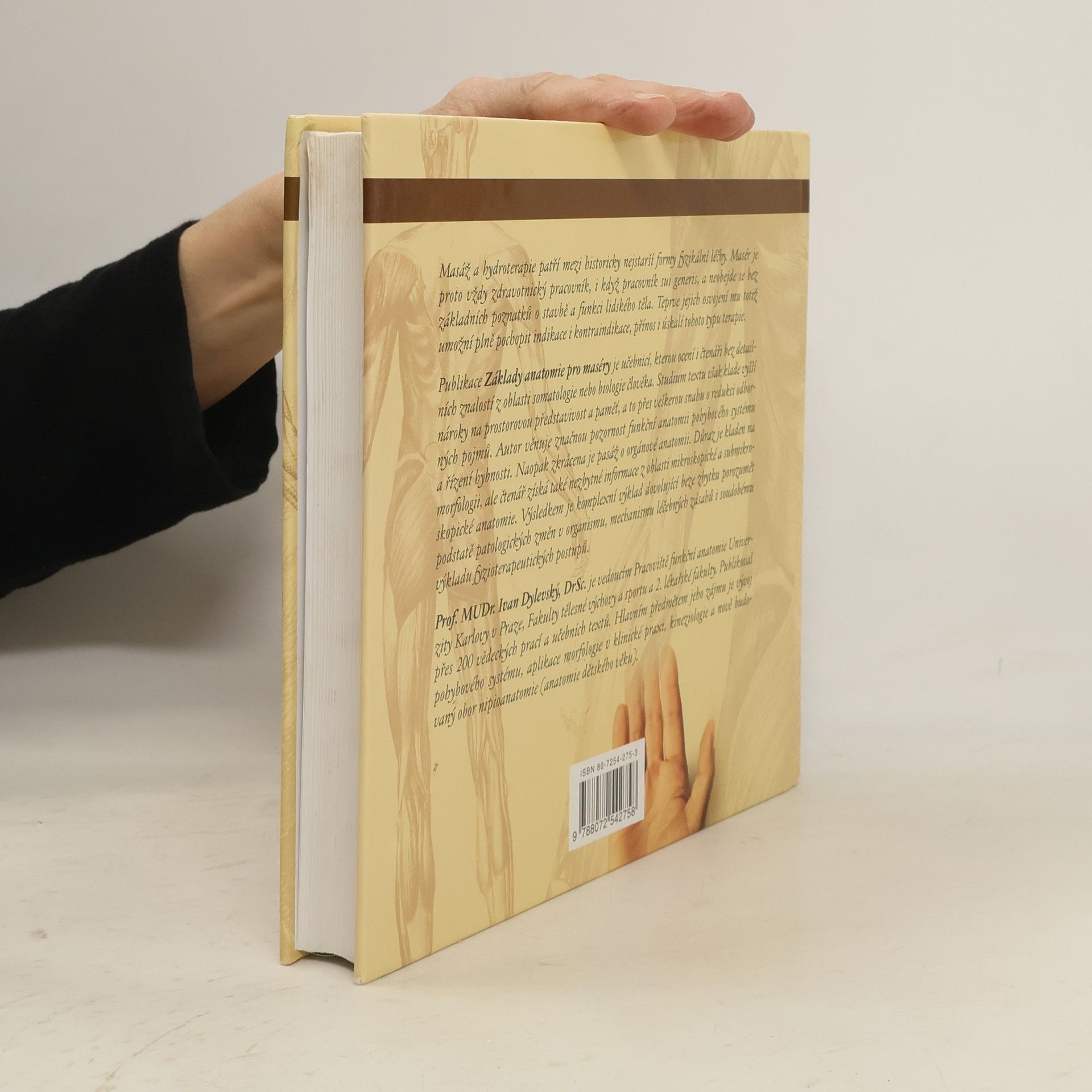 Masáž a hydroterapie patří mez historicky nejstarší formy fyzikální léčby. Masér je proto vždy zdravotnický pracovník, i když pracovník sui generis, a neobejde se bez základních poznatků o stavbě a funkci lidského těla. Teprve jejich osvojení mu totiž umožní plně pochopit indikace i kontraindikace, přínos i úskalí tohoto typu terapie.Publikace je učebnicí, kterou ocení i čtenáři bez detailních znalostí z oblasti somatologie nebo biologie člověka. Studium textu však klade vyšší nároky na prostorovou představivost a paměť, a to přes veškerou snahu o redukci odborných pojmů. Autor věnuje značnou pozornost funkční anatomii pohybového systému a řízení hybnosti. Naopak zkrácena je pasáž o orgánové anatomii. Důraz je kladen na morfologii, ale čtenář získá také nezbytné informace z oblasti mikroskopické a submikroskopické anatomie. Výsledkem je komplexní výklad dovolující bezezbytku porozumět podstatě patologických změn v organismu, mechanismu léčebných zásahů i soudobému výkladu fyzioterapeutických postupů.Prof. MUDr. Ivan Dylevský, DrSc. je vedoucím Pracoviště funkční anatomie Univerzity Karlovy v Praze, Fakulty tělesné výchovy a sportu a 2. lékařské fakulty. Publikoval přes 200 vědeckých prací a učebních textu. Hlavním předmětem jeho zájmu je vývoj pohybového systému, aplikace morfologie v klinické praxi, kineziologie a nově budovaný obor nipioanatomie (anatomie dětského věku).