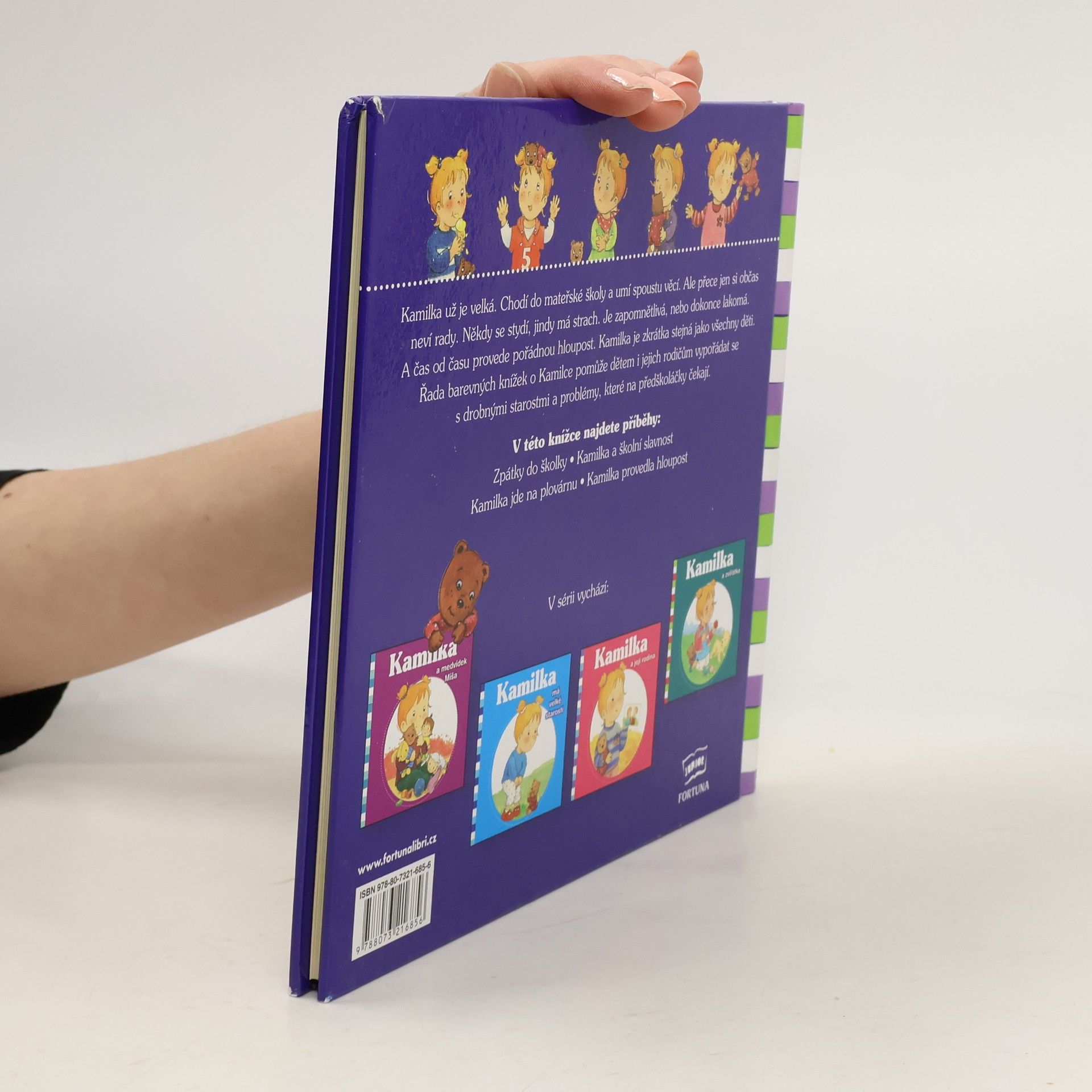 Mělo by vyjít 23.11.2012. Kamilka už je velká. Chodí do mateřské školy a umí spoustu věcí. Ale přece jen si občas neví rady. Někdy se stydí, jindy má strach. Je zapomnětlivá, nebo dokonce lakomá. A čas od času provede pořádnou hloupost. Kamilka je zkrátka stejná jako všechny děti. Řada barevných knížek o Kamilce pomůže dětem i jejich rodičům vypořádat se s drobnými starostmi a problémy, které na předškoláčky čekají. V prvním příběhu Zpátky do školy se Kamilka bojí nového školního roku, mísí se v ní rozporuplné pocity - těší se na své kamarády a zároveň se bojí. Ale nakonec pomáhá překonat strach svému mladšímu kamarádovi, který jde do školy úplně poprvé. Druhé vyprávění je Kamilka a školní slavnost, zde jde hlavně o překonávání studu z vystoupení před rodiči všech spolužáků. Další z příběhů Kamilka jde na plovárnu vyprváví o překonávání strachu z koupání, skluzavek atp. Kamilka provedla hloupost je poučný příběh o tom, že když provedeme něco špatného a mrzí nás to, hezky se omluvíme, maminka s tatínkem se na nás budou zlobit určitě o hodně méně.