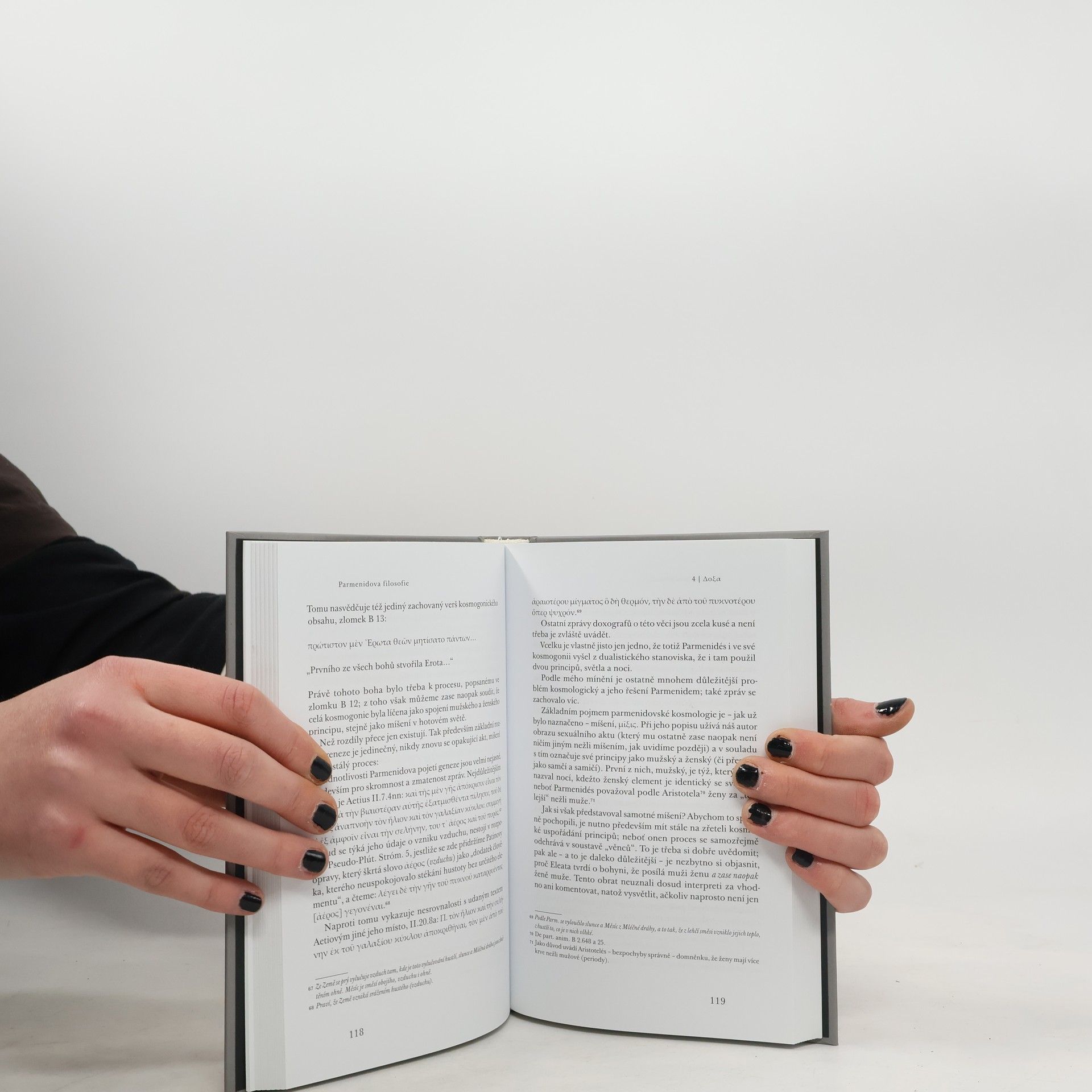 Parmenidova filosofie je prvním uceleným knižním textem levicového intelektuála Záviše Kalandry. Vznikl v polovině dvacátých let 20. století coby dizertační práce na Filozofické fakultě Univerzity Karlovy, ovšem před obhajobou jej Kalandra stáhl a nikdy tak své doktorské studium nedokončil. V originální studii Kalandra soustředí svou pozornost na vývoj tzv. předsokratovské filozofie, zejména pak na filozofa, jejž sám považuje za mezník – Parmenida. Kalandra v úvodu práce odsuzuje dosavadní výzkum fragmentů Parmenidova díla jako ahistorický a za svůj cíl si klade nápravu chyb, jež jsou při výkladu předsokratovské filozofie činěny. Analýza vyrůstá z historických a dialekticko-materialistických pozic, nepřehlédnutelný je autorův holistický přístup a také jistá adorace pohybu, resp. vývoje. Interdisciplinární analýza dochovaných fragmentů Parmenidových úvah zůstává i po pětaosmdesáti letech nejvýraznějším příspěvkem vzniklým v českém intelektuálním prostředí a představuje stále intelektuálně podnětný vklad do debat filozofických, historických i kosmologických.