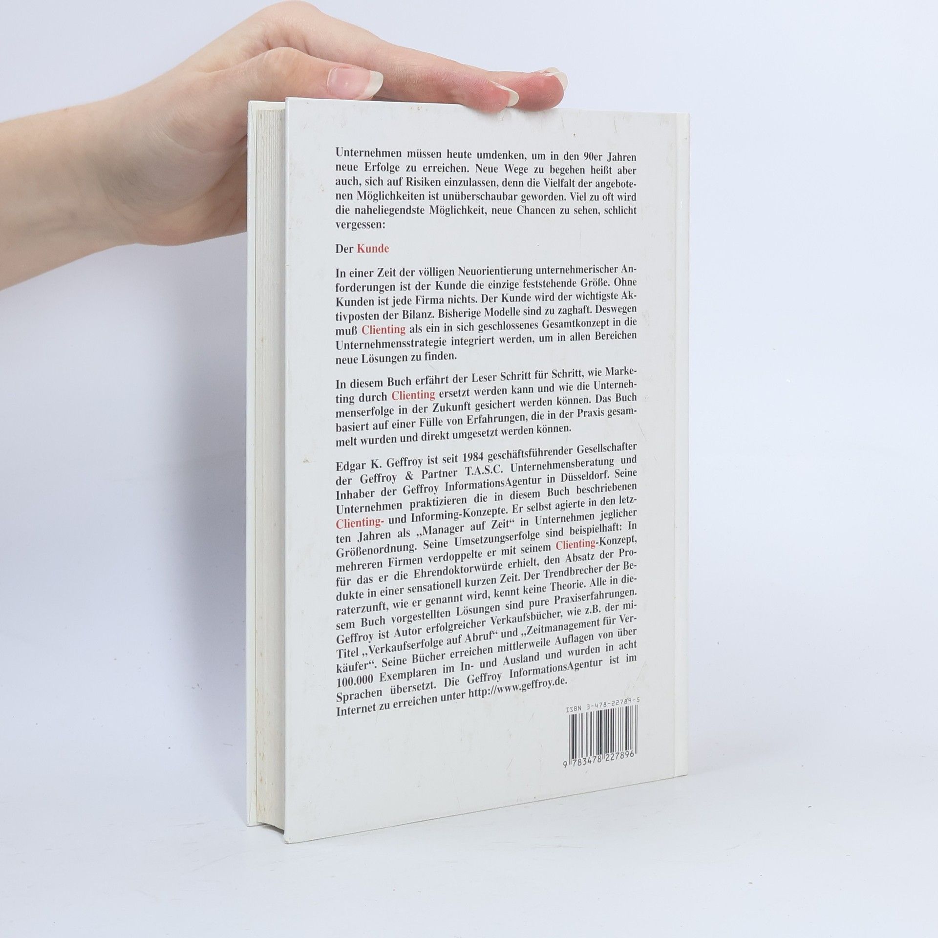 Wer ist Kunde von heute? Werden wir alle zu Schnäppchenjägern? Ein Trend ist mehr als offensichtlich: Alles wird immer billiger. Alle achten nur noch auf den Preis. Wie können Verkäufer darauf reagieren? Erfolgreich ist eine äußerst flexible Kundenstrategie – ohne diese kann kein Unternehmen überleben. Daher setzt dieses Buch auf Sie, die Leser: Von Ihnen müssen die entscheidenden Impulse ausgehen! Das Einzige, was stört, ist der Kunde stellt Ihnen Clienting vor die Lehre vom Kunden zu Partnern und Mitarbeiter zu engagierten Mitunternehmern. Im Mittelpunkt stehen nicht allein der Profit, sondern gute Beziehungen zu Ihren Kunden. Viele Menschen und Firmen, die Clienting umgesetzt haben, sind heute Marktführer auf Ihrem Gebiet. Entwickeln auch Sie ein neues Kundenverständnis!