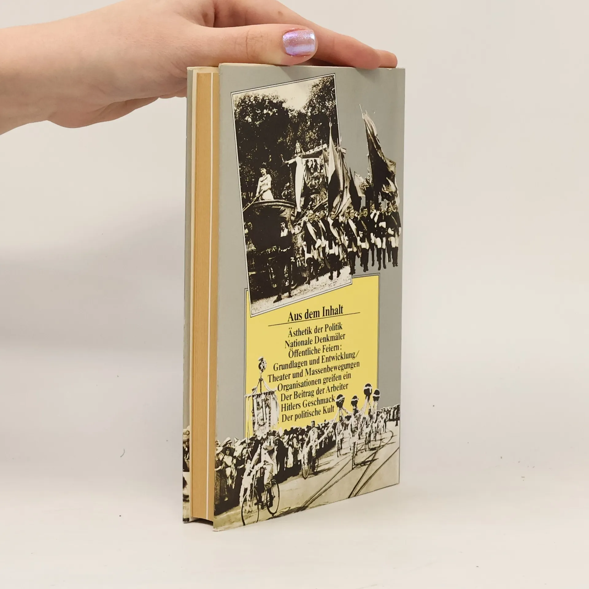 Gebunden mit Schutzumschlag und Fotos. Der Inhalt behandelt die Ästhetik der Politik, nationale Denkmäler, öffentliche Feiern, die Entwicklung des Theaters und Massenbewegungen sowie den Einfluss von Organisationen, den Beitrag der Arbeiter und Hitlers Geschmack im politischen Kult.
