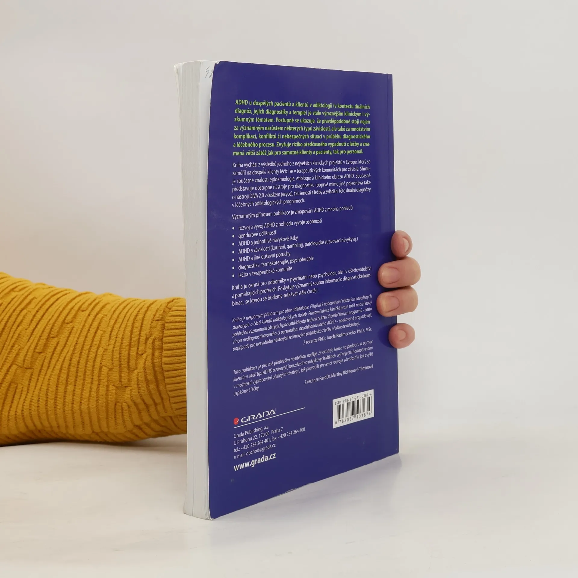 ADHD u dospělých pacientů a klientů v adiktologii se stává stále důležitějším tématem jak klinicky, tak výzkumně. Ukazuje se, že ADHD může přispívat k nárůstu některých typů závislostí a komplikacím během diagnostického a léčebného procesu, což zvyšuje riziko předčasného vypadnutí z léčby a představuje větší zátěž pro klienty i personál. Kniha se opírá o výsledky jednoho z největších klinických projektů v Evropě, zaměřeného na dospělé klienty v terapeutických komunitách pro závislé. Shrnuje současné znalosti o epidemiologii, etiologii a klinickém obrazu ADHD a představuje dostupné diagnostické nástroje, včetně DIVA 2.0 v českém jazyce, a zkušenosti z léčby této duální diagnózy v adiktologických programech. Publikace mapuje ADHD z různých perspektiv, včetně vývoje osobnosti, genderových odlišností, vztahu k návykovým látkám, dalším duševním poruchám, diagnostice, farmakoterapii a psychoterapii, a léčbě v terapeutických komunitách. Kniha je cenným zdrojem informací pro odborníky v psychiatrii, psychologii, ošetřovatelství a pomáhajících profesích, poskytující důležité poznatky o diagnostické kombinaci, se kterou se budeme setkávat stále častěji.