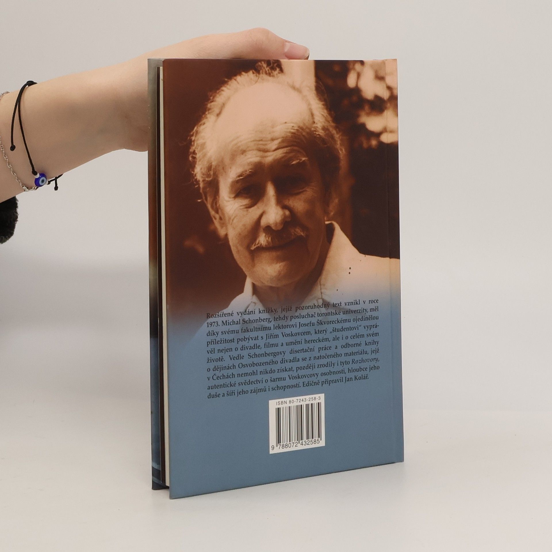 M. Schonberg, tehdy posluchač torontské univerzity, měl díky svému fakultnímu lektorovi J. Škvoreckému ojedinělou příležitost pobývat s Jiřím Voskovcem, který študentovi vyprávěl nejen o divadle, filmu a umění hereckém, ale o celém svém životě. Vedle Schonbergovy disertační práce a odborné knihy o dějinách Osvobozeného divadla se z natočeného materiálu, jejž v Čechách nemohl nikdo získat, později zrodily i tyto Rozhovory, autentické svědectví o šarmu Voskovcovy osobnosti, hloubce jeho duše a šíři jeho zájmů i schopností.