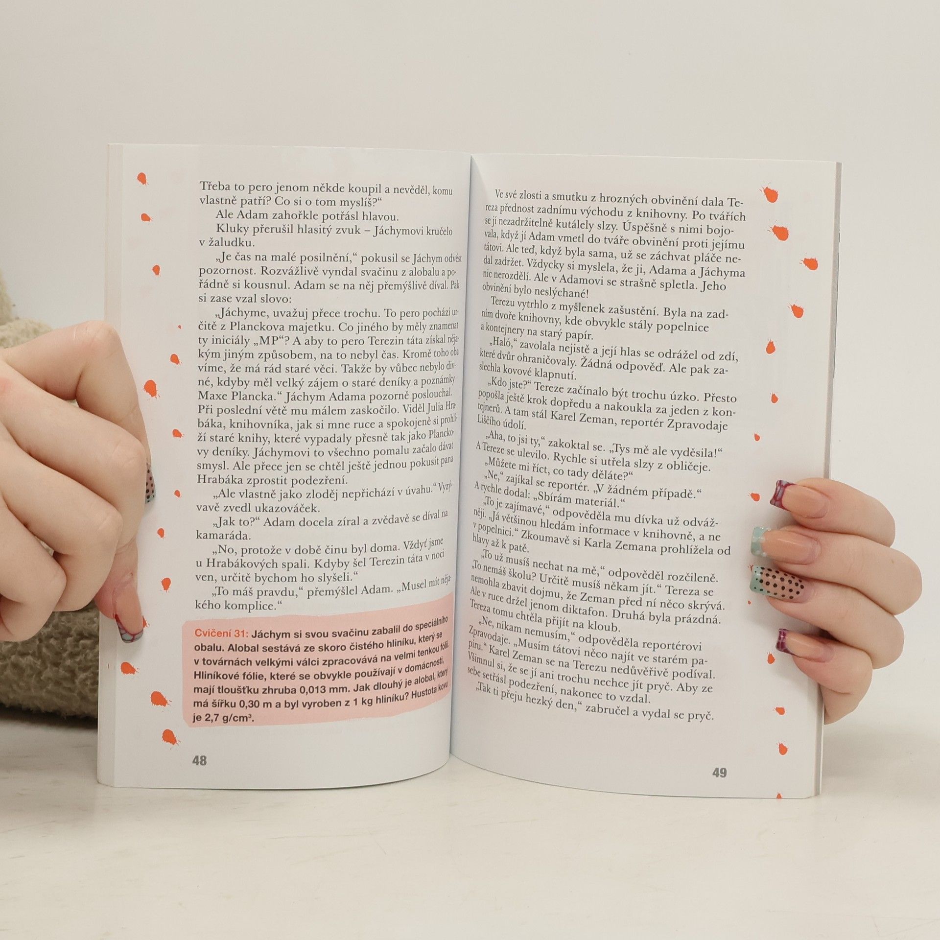 Napínavý dobrodružný detektivní příběh pro žáky vyššího stupně ZŠ, při kterých si zábavným způsobem procvičí vědomosti z fyziky. S novou, napínavou školní detektivkou si můžeš rychle a jednoduše prohloubit, osvěžit a přezkoušet svoje znalosti z fyziky – s nerozlučnými kamarády Adamem, Terezou a Jáchymem bude procvičování fyziky snadnější, plné vtipu a dobrodružství. Naši tři kamarádi pronásledují zlodějskou bandu a přitom jen tak mimochodem řeší fyzikální úkoly…