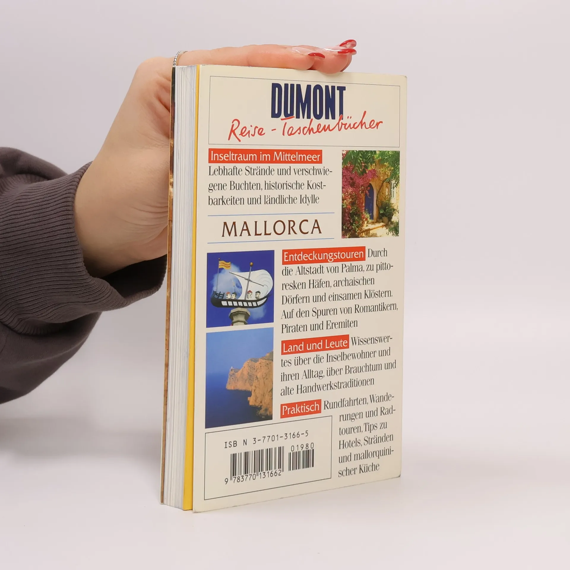 Mallorca, das wohl beliebteste Reiseziel deutscher Urlauber, lockt nicht nur mit Sonne, Sand und Meer. Die Tramuntana bietet zahlreiche Wandermöglichkeiten, die Hauptstadt Palma kunsthistorische Kostbarkeiten und attraktive Shoppingmeilen, das Hinterland beschauliche Ruhe abseits quirligen Strandlebens. Hans-Joachim Aubert, Autor zahlreicher Reiseführer und Bildbände, ist ein Kenner der Insel. Erleben Sie mit ihm das Inselparadies im Mittelmeer: Formentor mit spektakulären Ausblicken, zauberhafte Buchten an der Ostküste, Chopins Refugium in Valldemossa, Wasserspiele in arabischen Gärten oder eine Fahrt mit dem Roten Blitz! Gewusst wo: Jedes DUMONT Reise-Taschenbuch enthält einen mehrseitigen Atlas. Reiseführer- Text und Karten sind durch Seiten- und Koordinatenangaben auf praktische Weise miteinander verknüpft - schnelles Auffinden ist garantiert! Noch mehr Tipps: Ausgewählte Tipps mit Preisangaben zu Unterkünften und viele kommentierte Adressen zu Essen & Trinken, Shopping, Nachtleben sowie Sport & Spaß machen den Urlaub zum Genuss. Nützliches Leitsystem durch die Adressenvielfalt sind die Piktogramme. Tipps für Ihren Urlaub: Wann ist die beste Reisezeit? Lieber pauschal oder doch individuell? Wo sind die bekanntesten Sehenswürdigkeiten? Das Kapitel Tipps für Ihren Urlaubs beantwortet kompetent die wichtigsten Fragen zur Vorbereitung und Orientierung!