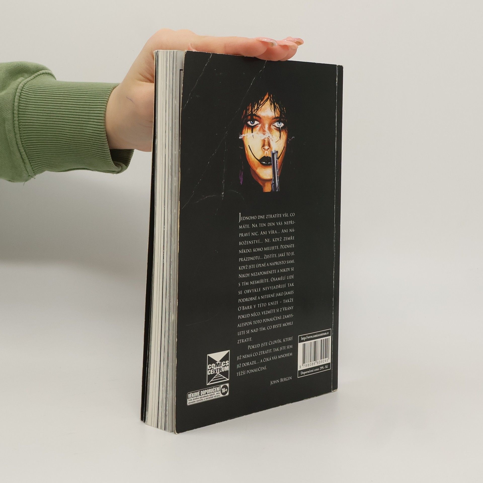 Erik miluje Shelly. Shelly miluje Erika. Jejich čistá láska překoná všechny překážky. Až do tragické vraždy tohoto páru bandou ztroskotanců závislých na drogách... Vrána přivádí na svět zpět mstitele, aby vyrovnal nevyřízené účty. To je kultovní comicsový příběh o lásce, smrti a pomstě vyprávěný mnoha zajímavými styly kresby a malby. Comics vznikl na základě vlastního prožitku autora Jamese O'Barra, kterému opilý řidič dodávky zabil snoubenku. Ze zoufalství, smutku a drog vznikl mstitel Vrána, který se vrací ze záhrobí srovnat účty. Celá kniha je vyprávěna filmovým stylem rychlých střihů a střídají se v ní emotivní scény vzpomínek a brutální akce. Pro někoho to je jen akce v aktu pomsty, pro jiného nesmírně dojímavý a smutný příběh někoho, kdo ztratil velmi blízkou bytost, pro jiného mistrné dílo kombinující pop-kulturní prvky s citacemi písňových textů Cure, Joy Division a Rimbaudových veršů.