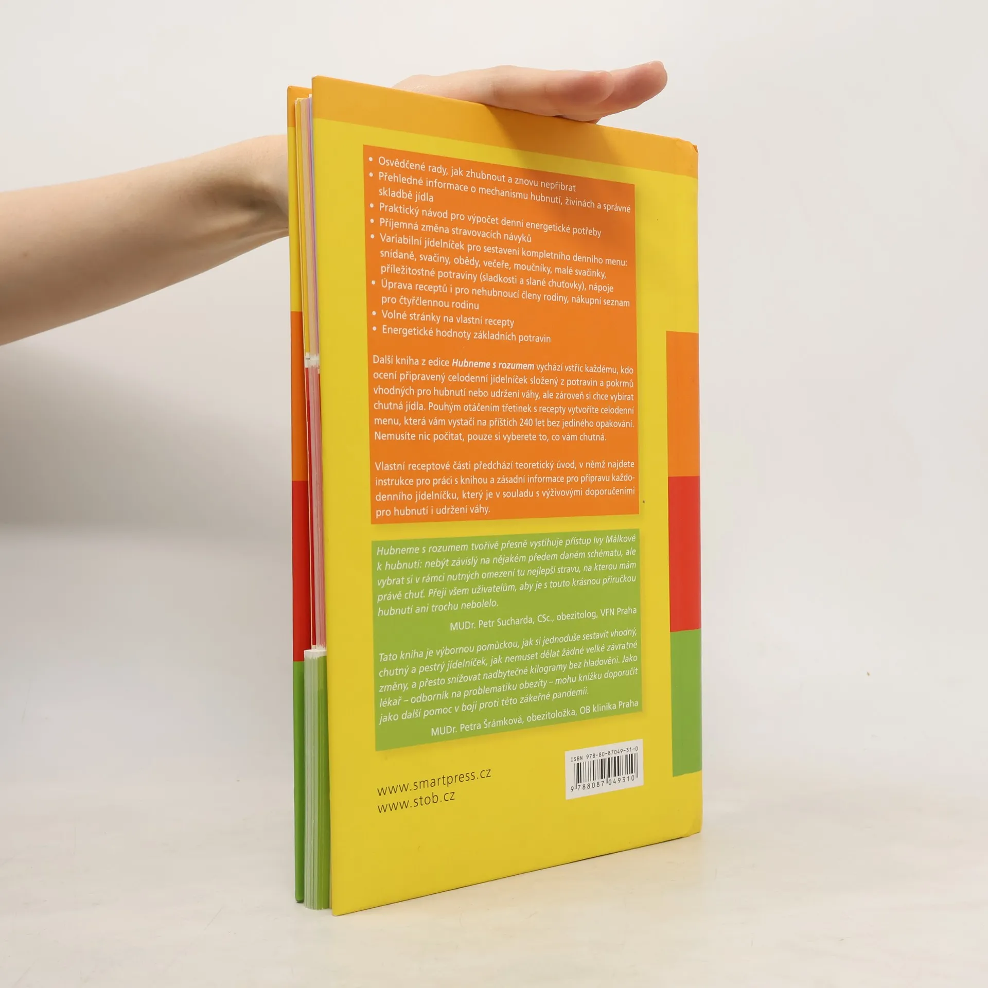 Pokračování edice Hubneme s rozumem a bestselleru Hubneme s rozumem v praxi (dosud prodáno 22 000 kusů) opět přináší recepty na nízkoenergetická jídla s propočtenou energetickou hodnotu a optimálním poměrem živin, tentokrát ale nabízí ještě mnohem více. Kniha je na výšku rozdělena na tři části, které je možné díky rozstřižení a kroužkové vazbě samostatně otáčet. Vrchní třetina knihy je věnována snídaním a svačinkám, prostřední obědům a spodní část večeřím. Listováním a otáčením si tak každý může vytvořit vlastní jídelníček na celý den - kniha obsahuje tolik receptů, aby se v průběhu dvou měsíců neopakoval žádný z hlavních chodů, systém listování umožňuje vytvořit téměř 90 000 variací hlavních denních jídel - kombinace snídaně, oběda a večeře se tedy nemusí ani jednou opakovat během příštích 240 let. Přidáte-li navíc jednu svačinu denně, vytvoříte 2,5 milionu různých kombinací jídelníčku na celý den (tedy snídaně, oběda, večeře a svačiny). Čtenář nemusí nic počítat, pouze si sám vybere to, co mu chutná, a listováním jednotlivými částmi knihy si sestaví vlastní jídelníček pro každý den. Kniha obsahuje chutné a nutričně vhodné recepty nejen pro ty, kdo chtějí zhubnout, ale i pro ty, kdo si své váhové úbytky chtějí udržet (i tím je kniha unikátní, český trh zatím nabízí vhodné ukázkové jídelníčky pouze pro hubnoucí).