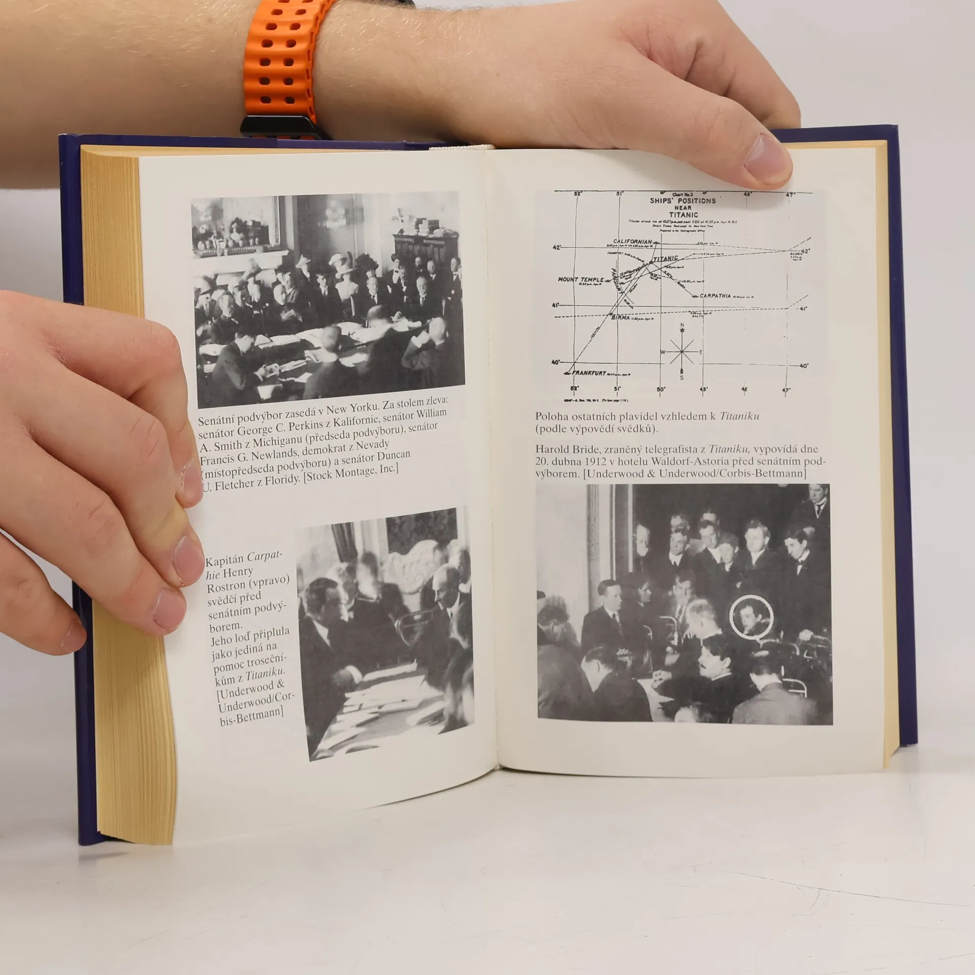 Kniha je přepisem výpovědí při vyšetřování Senátem z roku 1912. Jsou zde výpovědi: J. Bruce Ismaye, provozního ředitele White Star Line, Arthura Henryho Rostrona, kapitána Carpathie, Charlese Lightollera, II. důstojníka Titaniku a dalších, jež nešťastnou událost přežili.