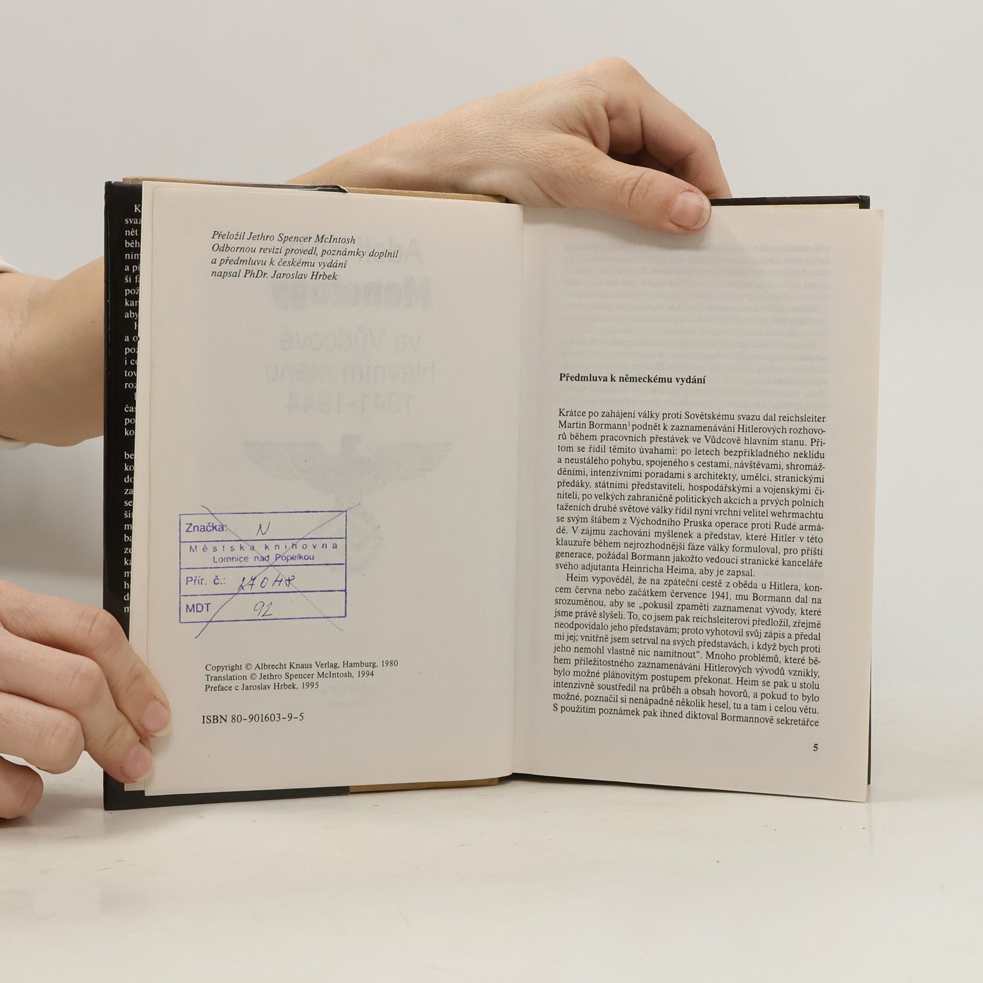 Monology ve Vůdcově hlavním stanu 1941-1944, Adolf Hitler, Jaroslav Hrbek, Jethro Spencer McIntosh