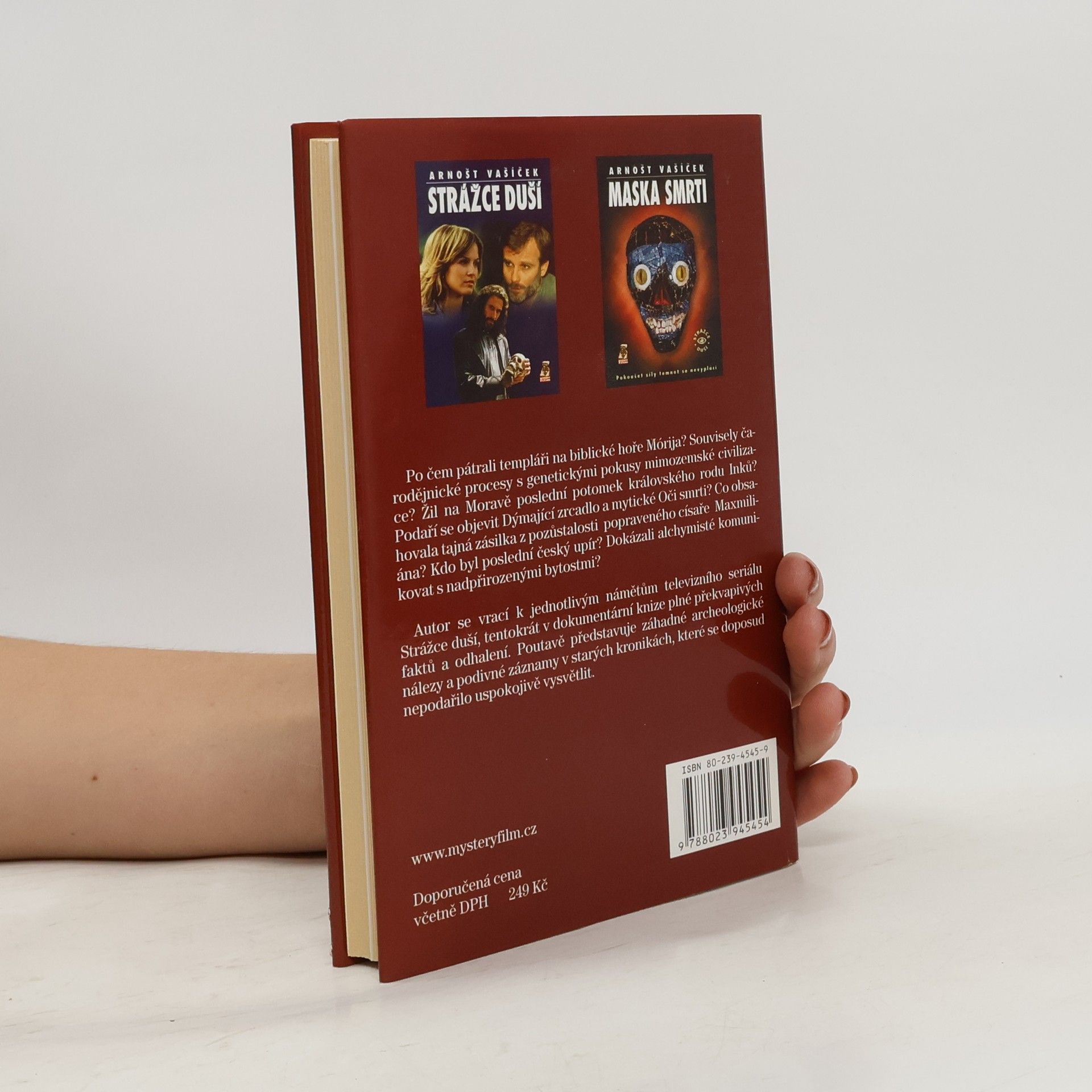 Po čem pátrali templáři na biblické hoře Mórija? Souvisely čarodějnické procesy s genetickými pokusy mimozemské civilizace? Žil na Moravě poslední potomek královského rodu Inků? Podaří se objevit Dýmající zrcadlo a mytické Oči smrti? Co obsahovala tajná zásilka z pozůstalosti popraveného císaře Maxmiliána? Kým byl poslední český upír? Dokázali alchymisté komunikovat s nadpřirozenými bytostmi? Autor se vrací k jednotlivým námětům televizního seriálu Strážce duší tentokrát v dokumentární knize plné překvapivých faktů a odhalení. Poutavě představuje záhadné archeologické nálezy a podivné záznamy v starých kronikách, které se doposud nepodařilo uspokojivě vysvětlit.