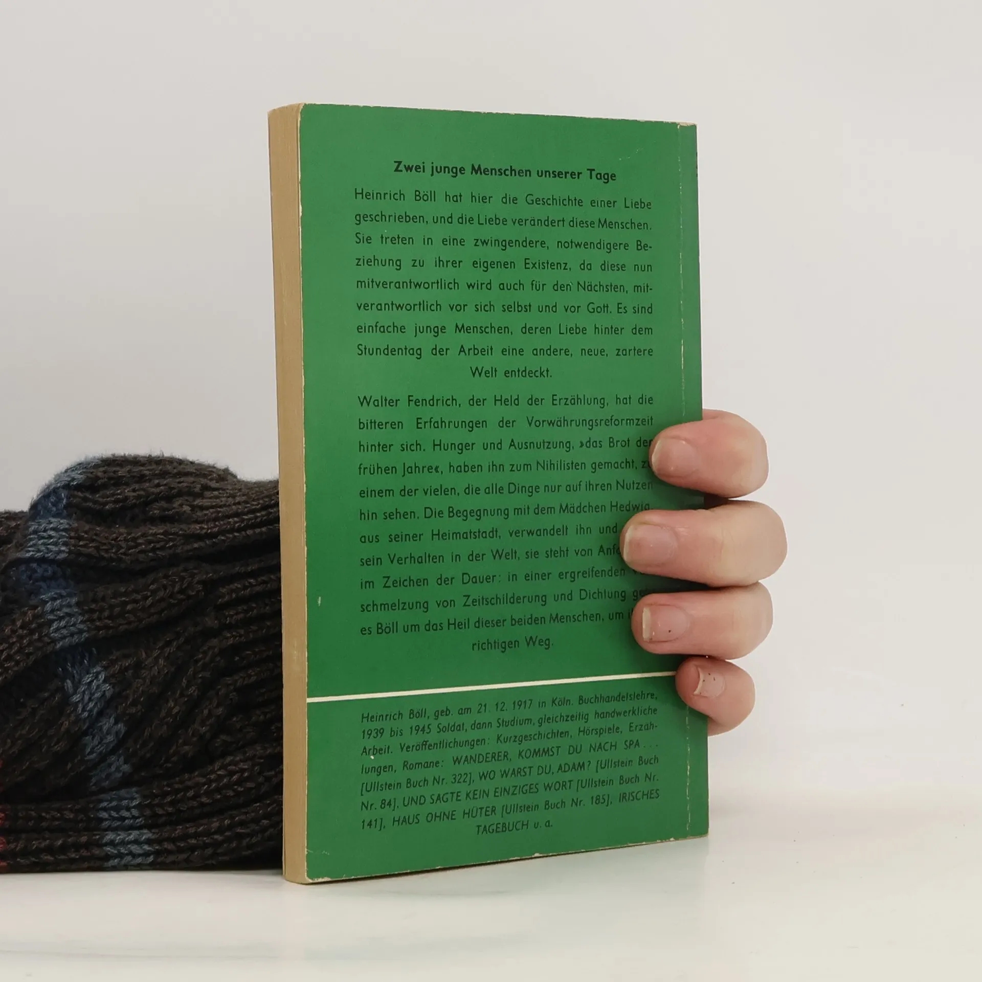 »Ich stellte mich an die Treppe zum Bahnsteig und dachte: blond, zwanzig Jahre, kommt in die Stadt, um Lehrerin zu werden ... Walter Fendrich, der sich in der Nachkriegszeit planlos und kurzfristig als Banklehrling, Verkäufer und Tischlerlehrling versuchte, erhält eines Tages einen Brief seines Vaters, der ihn bittet, die Tochter eines Kollegen vom Bahnhof abzuholen. Das Zusammentreffen mit der zwanzigjährigen Hedwig, die er zuletzt nur flüchtig als Kind gesehen hatte, wird für Walter zur schicksalhaften Begegnung. Heinrich Böll gelingt es, kleinbürgerliche Schauplätze, die Atmosphäre der Hungerjahre und der Wirtschaftsblüte im Rahmen einer ungewöhnlichen Liebesgeschichte mit sparsamen Mitteln souverän zu vergegenwärtigen.
