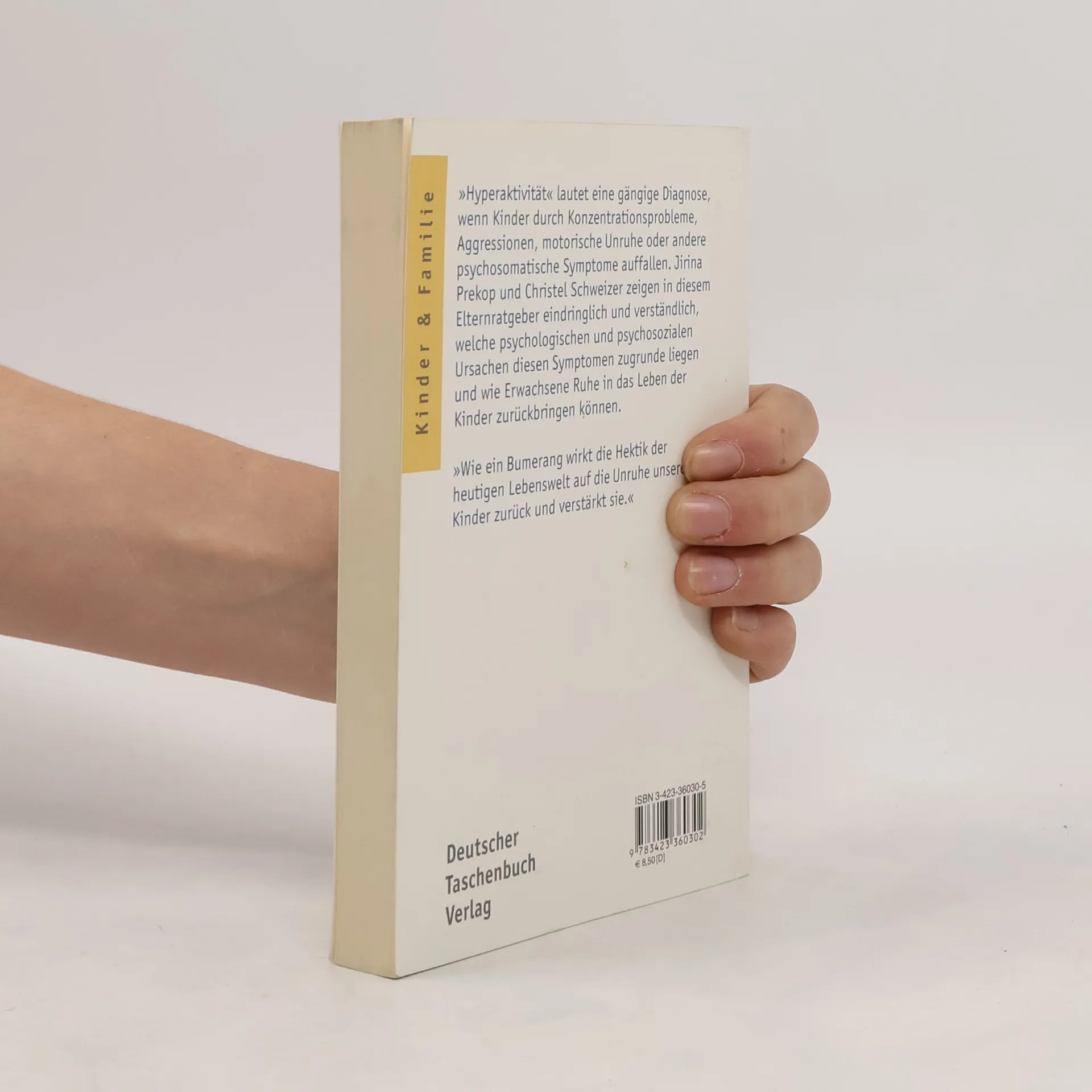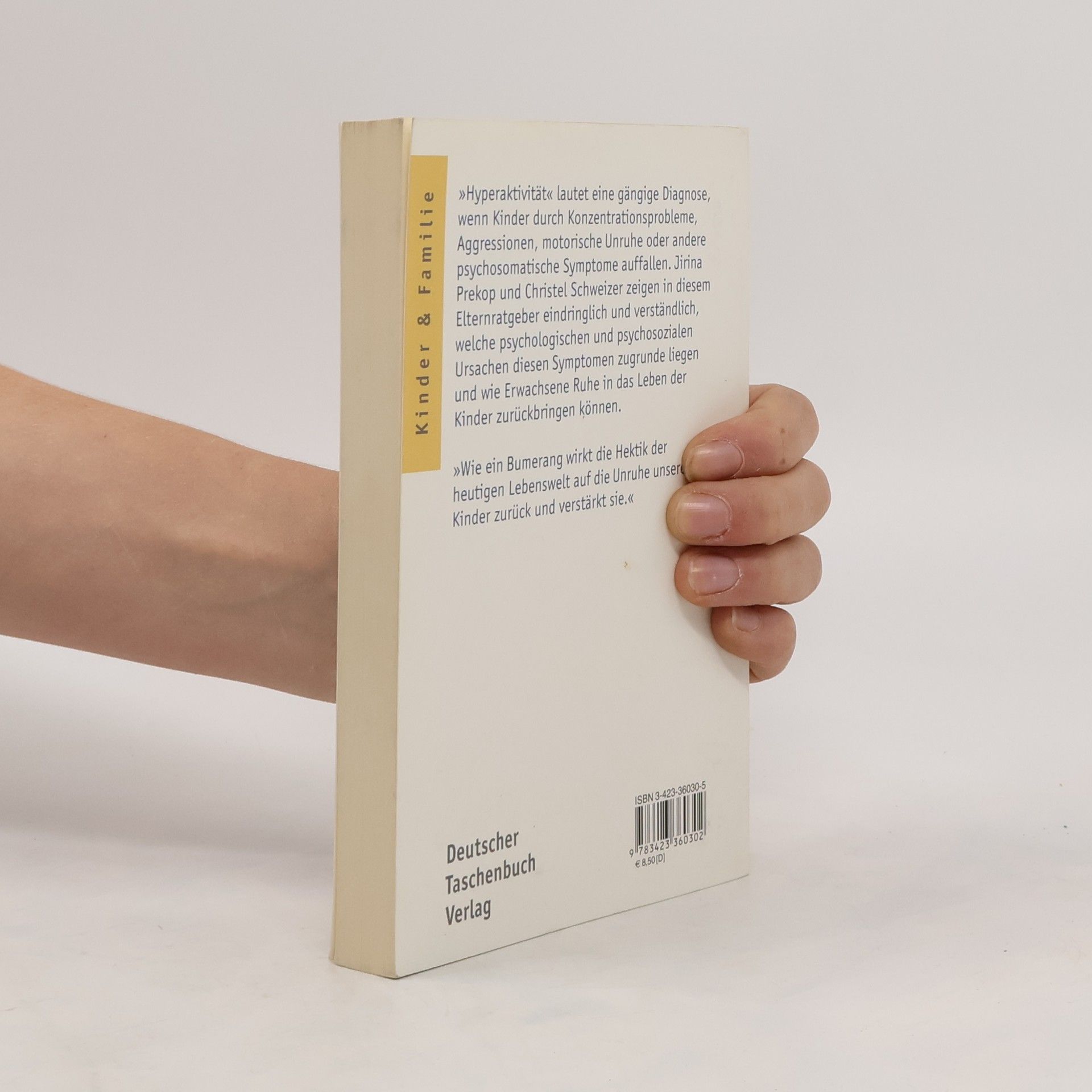 »Hyperaktivität« lautet eine gängige Diagnose, wenn Kinder durch Konzentrationsprobleme, Aggression, motorische Unruhe oder andere psychosomatische Symptome auffallen. Jirina Prekop und Christel Schweizer zeigen in diesem Elternratgeber eindringlich und verständlich, welche psychologischen und psychosozialen Ursachen diesen Symptomen zugrunde liegen und wie Erwachsene Ruhe in das Leben der Kinder zurückbringen können.