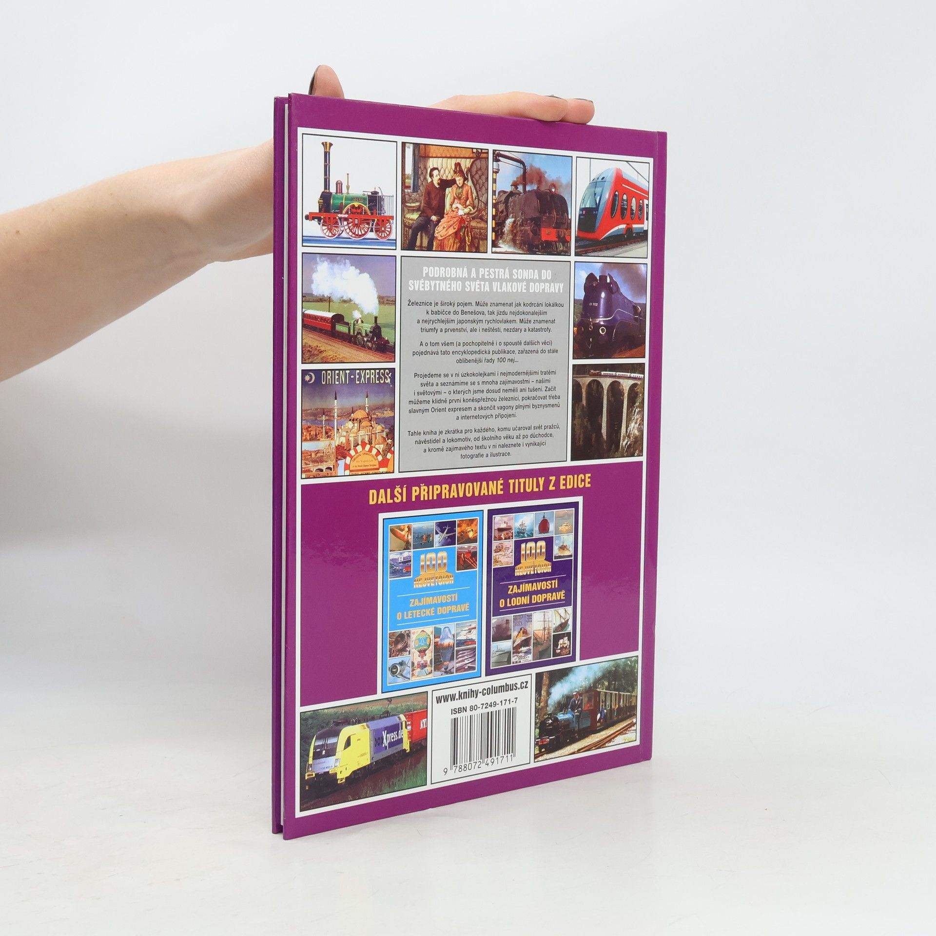 Podrobná a pestrá sonda do svébytného světa vlakové dopravy. Železnice je široký pojem. Může znamenat jak kodrcání lokálkou k babičce do Benešova, tak jízdu nejdokonalejším a nejrychlejším japonským rychlovlakem. Může znamenat triumfy a prvenství, ale i neštěstí, nezdary a katastrofy. A o tom všem (a pochopitelně i o spoustě dalších věcí) pojednává tato encyklopedická publikace, zařazená do stále oblíbenější řady 100 nej... Projedete se v ní úzkokolejkami i nejmodernějšími tratěmi světa a seznámíte se s mnoha zajímavostmi – našimi i světovými - o kterých jste dosud neměli ani tušení. Začít můžete klidně první koněspřežnou železnicí, pokračovat třeba slavným Orient expresem a skončit vagony plnými byznysmenů a internetových připojení. Tato kniha je zkrátka pro každého, komu učaroval svět pražců, návěstidel a lokomotiv, od školního věku až po důchodce, a kromě zajímavého textu v ni naleznete i vynikající fotografie a ilustrace.