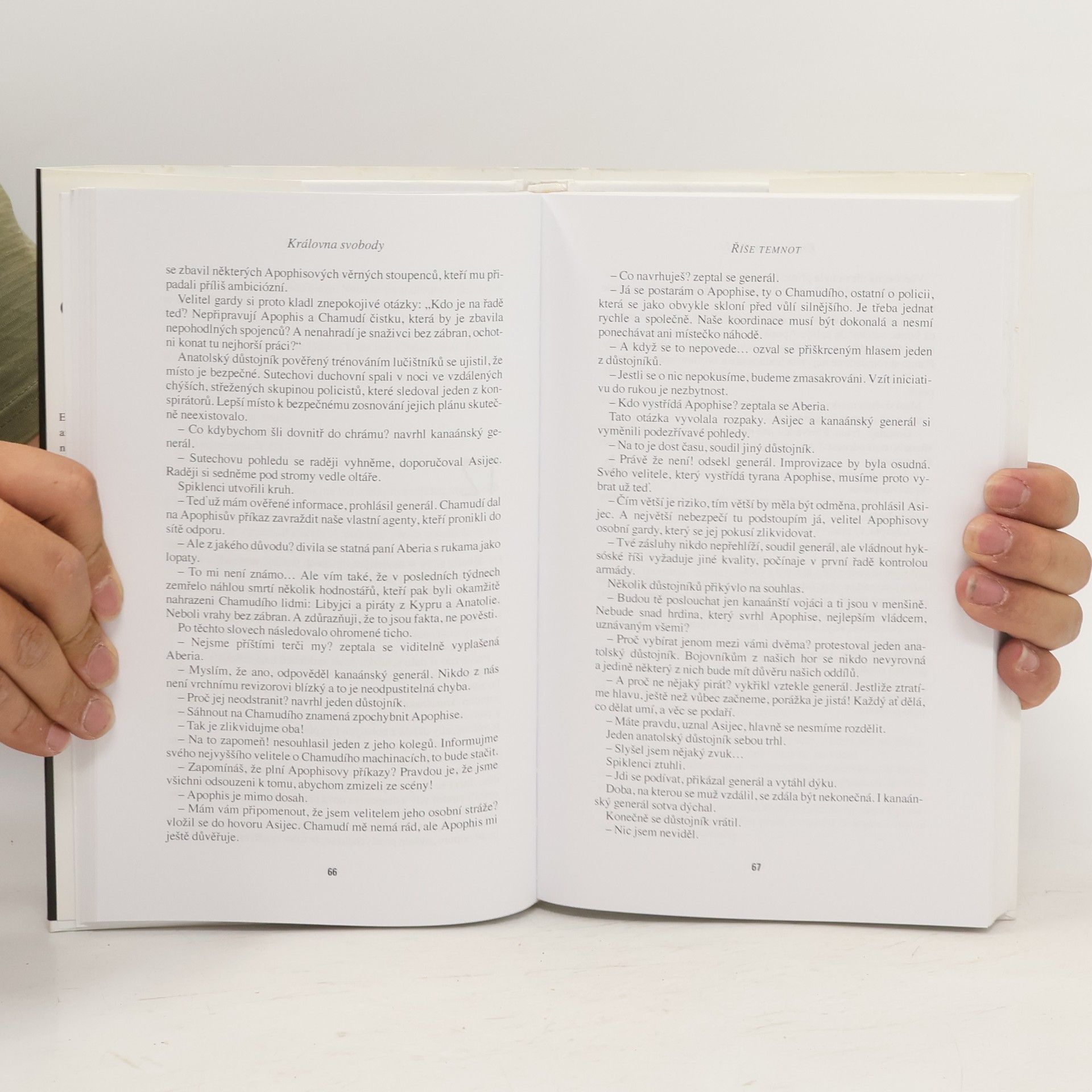 Historický román o thébské královně, která se ve starověku postavila na obranu Egypta proti okupantům. Egypt je pod nadvládou krutých Hyksósů, pouze Théby jsou dosud svobodné. V této těžké době vládu po své matce převzala odvážná princezna Ahotep a její milovaný choť Seqen, který, ač neurozený, se po jejím boku stal faraonem. Královský pár se rozhodne svést rozhodující nelítostnou bitvu proti nepřátelům. Bitva je vítězná, Seqen v ní však zahyne a svobodu v Thébách musí hájit sama Ahotep, než doroste její malý syn - budoucí faraon. Další historický román francouzského egyptologa se navrací do tzv. druhého přechodného období Egypta, kdy téměř celou říši ovládla barbarská vojska z Asie.