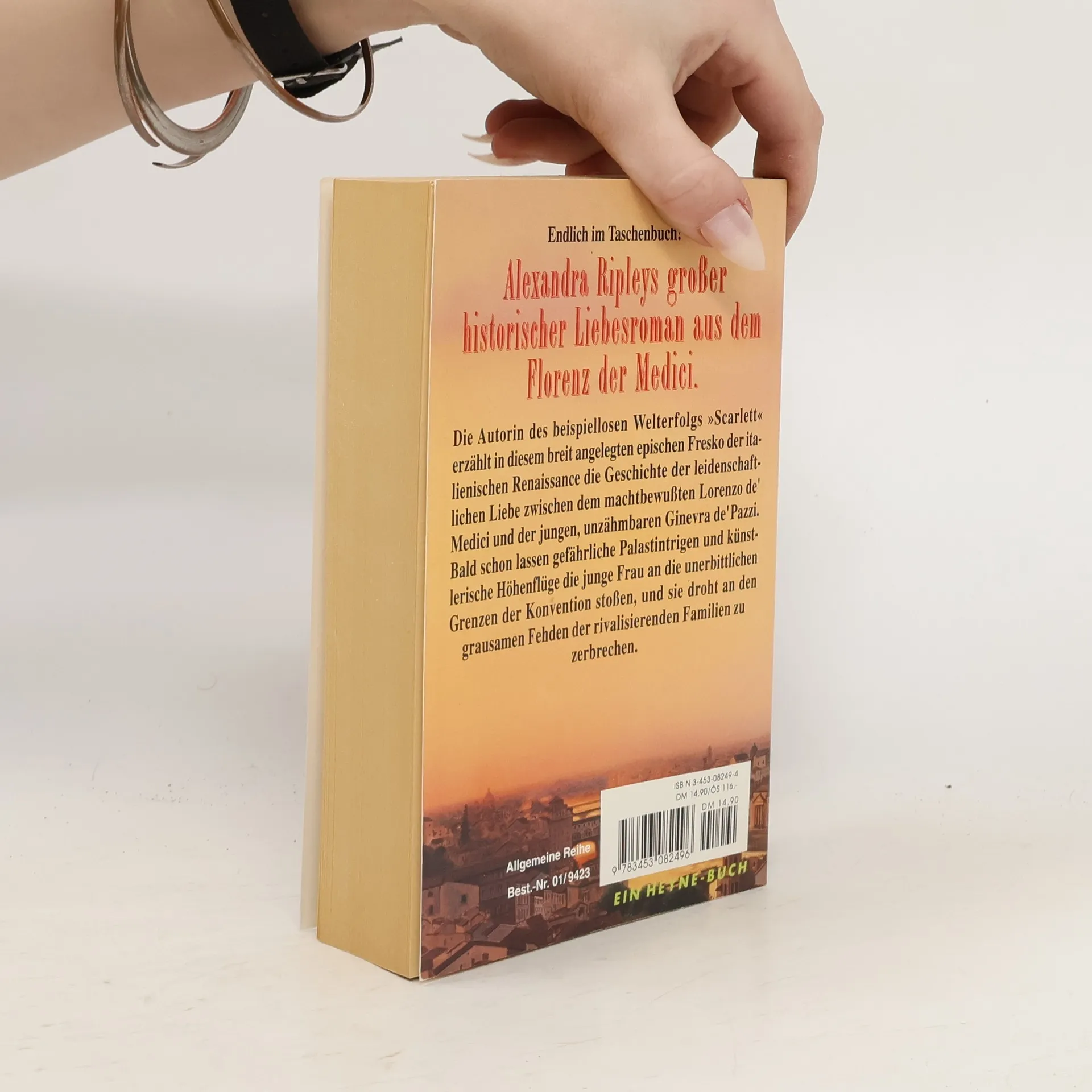 Florenz, 1469. Die Aufsteigerfamilie der Medicis hat die Macht ergriffen, drängt alteingesessene Aristokraten wie die Pazzis aus der Stadt. Schon haben jene ein Söldnerheer aufstellen lassen, mit dessen Hilfe sie ihre verlorenen Rechte und Privilegien zurückerobern wollen. Vor diesem Hintergrund erzählt Alexandra Ripley von der Liebe zwischen dem machtbewußten Lorenzo de Medici und der eigenwilligen Ginevra de Pazzi, eine Beziehung, die beide Familien maßlos erbost und für die es im Florenz jener Tage eigentlich keinen Platz gibt.