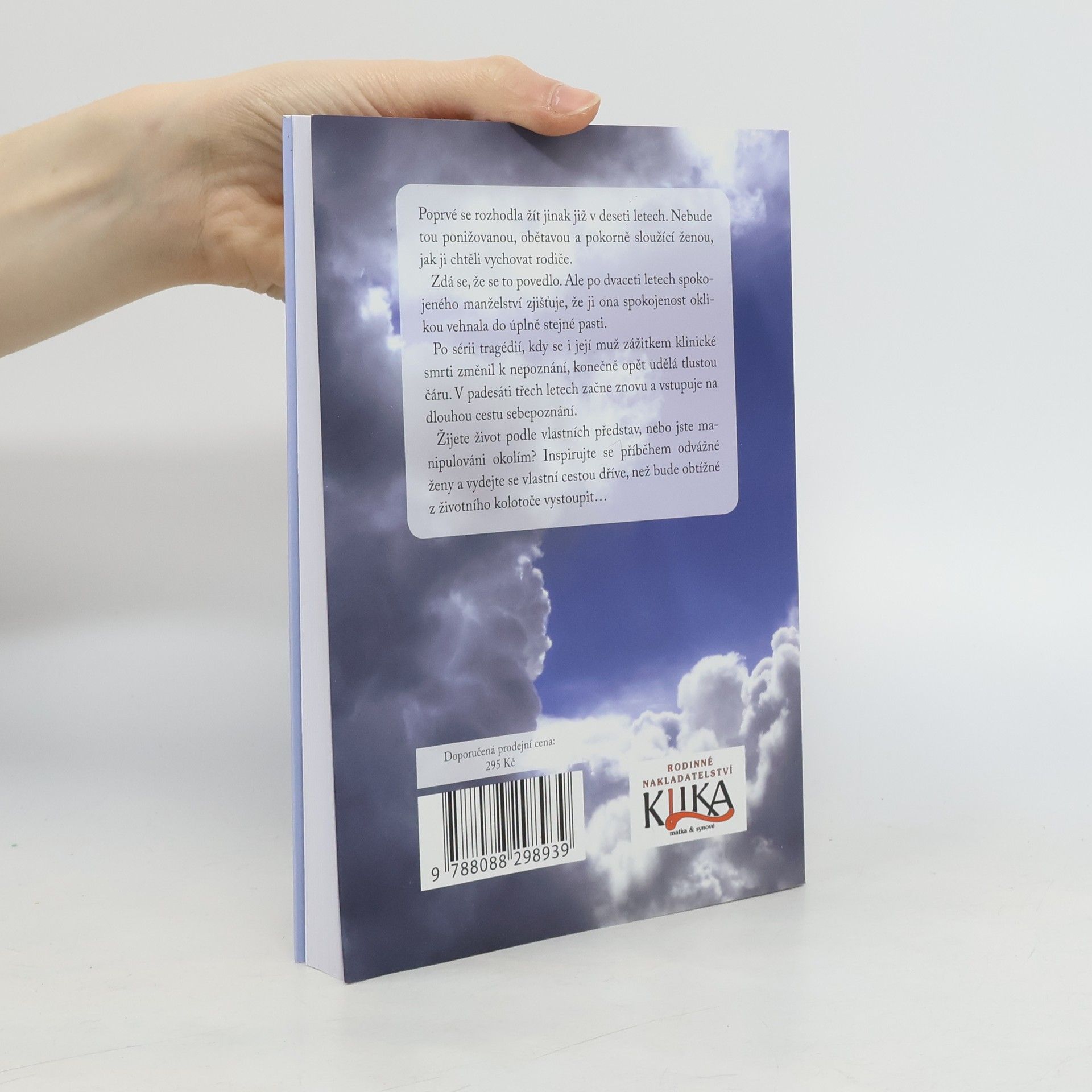 Poprvé se rozhodla žít jinak již v deseti letech. Nebude tou ponižovanou, obětavou a pokorně sloužící ženou, jak ji chtěli vychovat rodiče. Zdá se, že se to povedlo. Ale po dvaceti letech spokojeného manželství zjišťuje, že ji ona spokojenost oklikou vehnala do úplně stejné pasti. Po sérii tragédií, kdy se i její muž zážitkem klinické smrti změnil k nepoznání, konečně opět udělá tlustou čáru. V padesáti třech letech začne znovu a vstupuje na dlouhou cestu sebepoznání. Žijete život podle vlastních představ, nebo jste manipulováni okolím? Inspirujte se příběhem odvážné ženy a vydejte se vlastní cestou dříve, než bude obtížné z životního kolotoče vystoupit…
