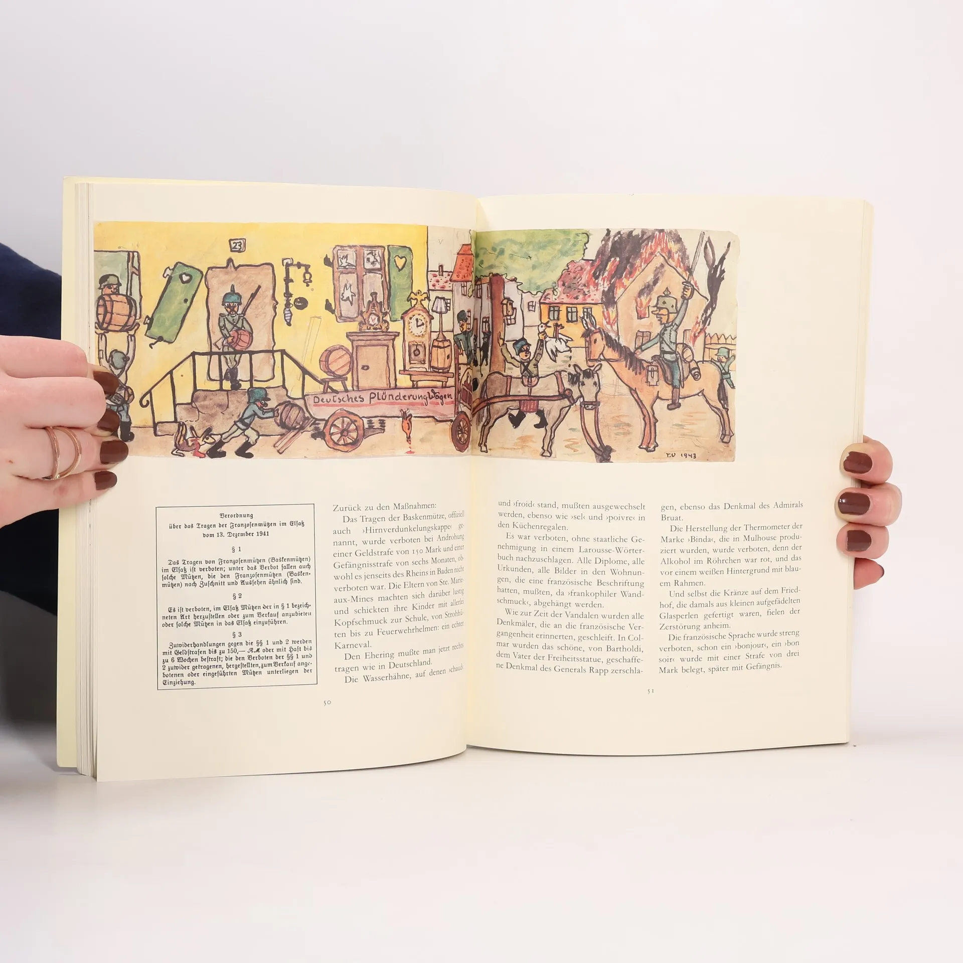 Tomi Ungerer ist neun Jahre alt, als deutsche Truppen 1940 das Elsaß besetzen. Die französischsprachigen Lehrer werden durch deutsche Lehrer, die bereits in der Wehrmacht gedient hatten, ersetzt. Deutsch wird die offizielle Sprache, Französisch bei Androhung strenger Strafen verboten, aus Jean-Thomas, von allen Tomi genannt, wird Hans, der in der Schule jetzt in Sütterlinschrift schreiben muß. Tomi Ungerer erzählt vom Alltagsleben, vom Kieg, von der Libération. Und er erzählt die Streiche und Erlebnisse eines heranwachsenden Buben und berichtet, wie sich dort, wo Unterdrückung herrscht, Widerstand regt: er lernt schnell, statt "Heil Hitler!" "Ein Liter!" zu rufen. In der Familie Ungerer wurde nichts weggeworfen, alle Schulhefte und Bilder, die der kleine Tomi malte, sind erhalten. Es ist überraschend, die Anfänge zu sehen: bereits als kleiner Junge hält er alles, was er sieht und was ihn berührt, in Bildern fest.