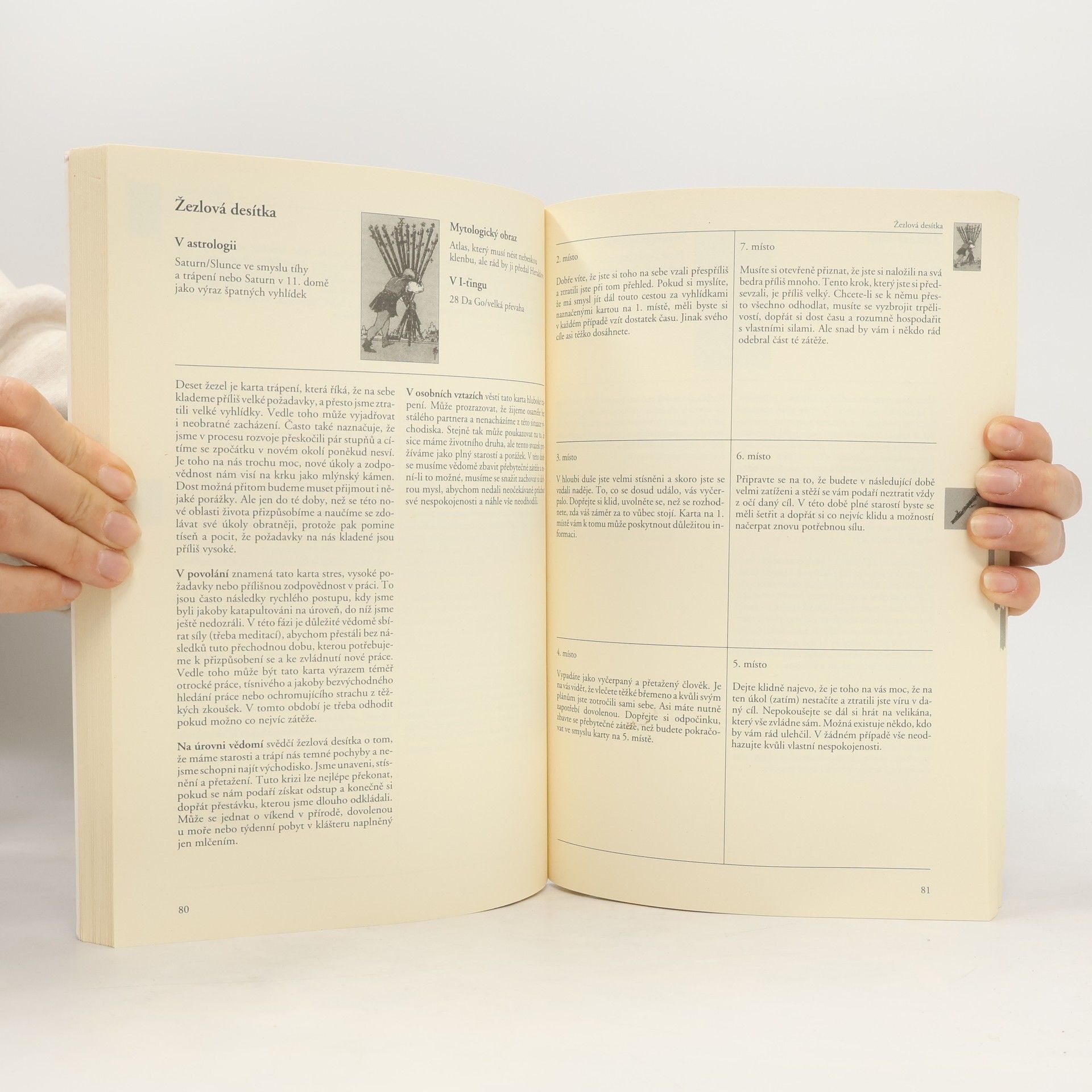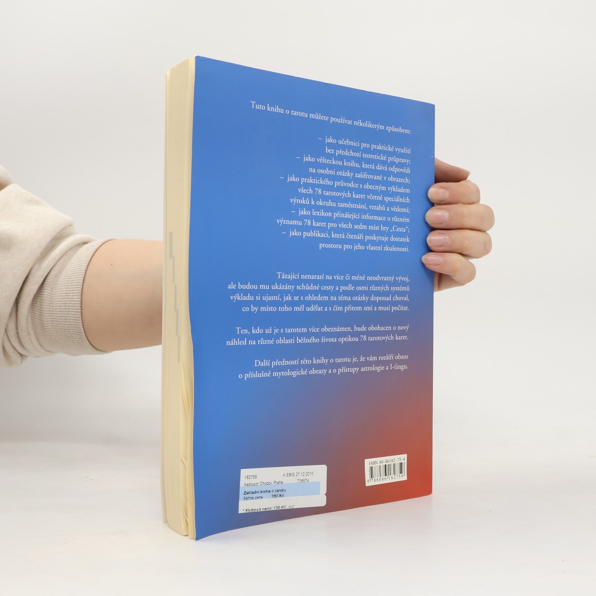 Tuto knihu o tarotu můžete používat několikerým způsobem: jako učebnici pro praktické využitíbez předchozí teoretické průpravy jako věšteckou knihu, která dává odpovědina osobní otázky zašifrované v obrazech- jako praktického průvodce s obecným výkladem všech 78 tarotových karet včetně speciálních výroků k okruhu zaměstnání, vztahů a vědomí; jako lexikon přinášející informace o různémvýznamu 78 karet pro všech sedm míst hry "Cesta"; jako publikaci, která čtenáři poskytuje dostatek prostoru pro jeho vlastní zkušenosti. Tázající nenarazí na více či méně neodvratný vývoj, ale budou mu ukázány schůdné cesty a podle osmi různých systémů výkladu si ujasní, jak se s ohledem na téma otázky doposud choval, co by místo toho měl udělat a s čím přitom smí a musí počítat. Ten, kdo už je s tarotem více obeznámen, bude obohacen o nový náhled na různé oblasti běžného života optikou 78 tarotových karet. Další předností této knihy o tarotu je, že vám rozšíří obzor o příslušné mytologické obrazy a o přístupy astrologie a I-ťingu.