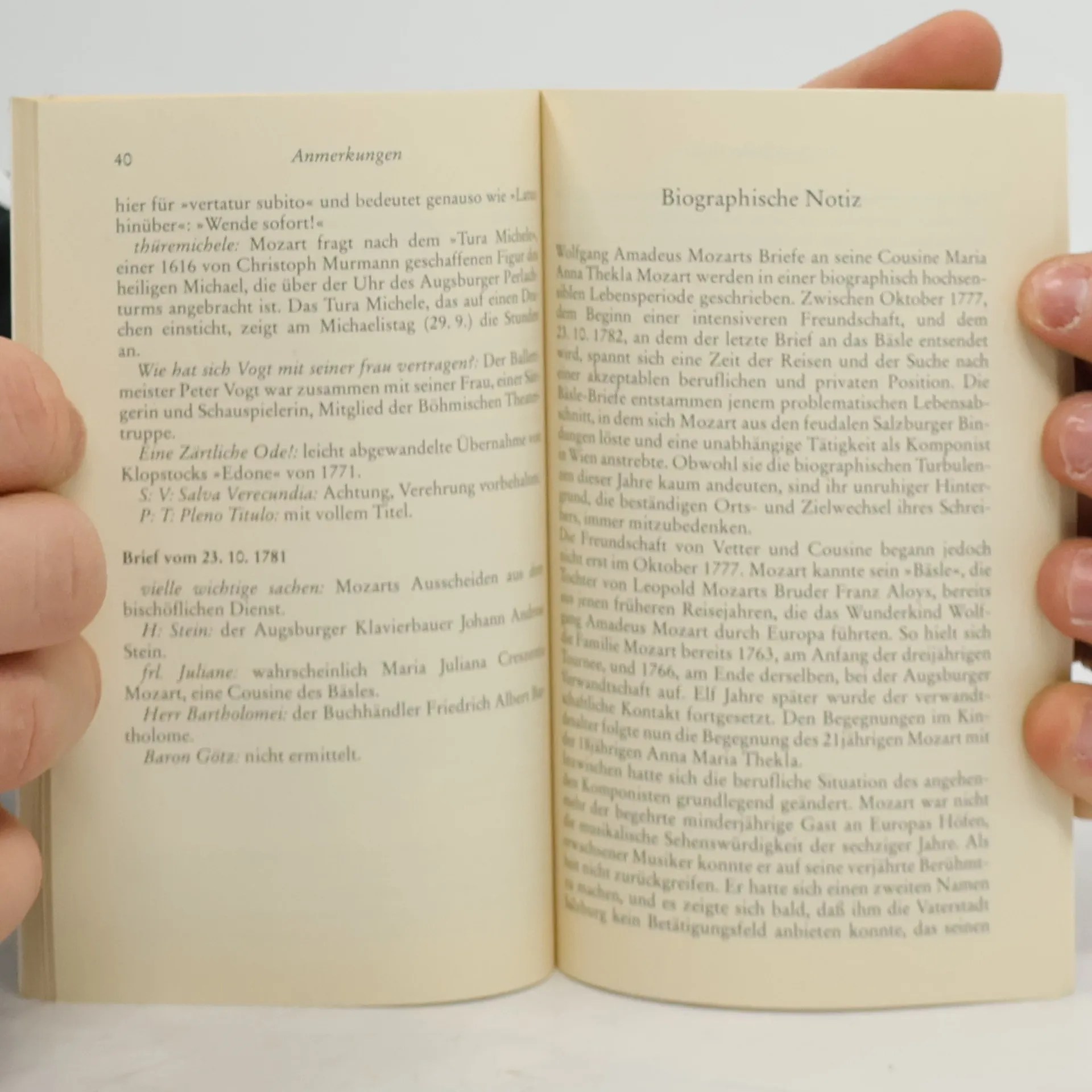 Die Briefe, die Mozart als junger Mann an seine Kusine Maria Anna Thekla geschrieben hat, sind in ihrem anarchischen Wortwitz, ihrer drastischen Direktheit und obszönen Derbheit ein einzigartiges Zeugnis deutscher Briefkultur. In der Rolle des Hanswurst ist ihm jede Albernheit recht, um gesellschaftliche Konventionen zu attackieren. Mit großer Lust an fäkaler Komik parodiert Mozart den ganzen Fundus repräsentativer Kunstformen und höfischen Dekorums und macht sie lustvoll zunichte.