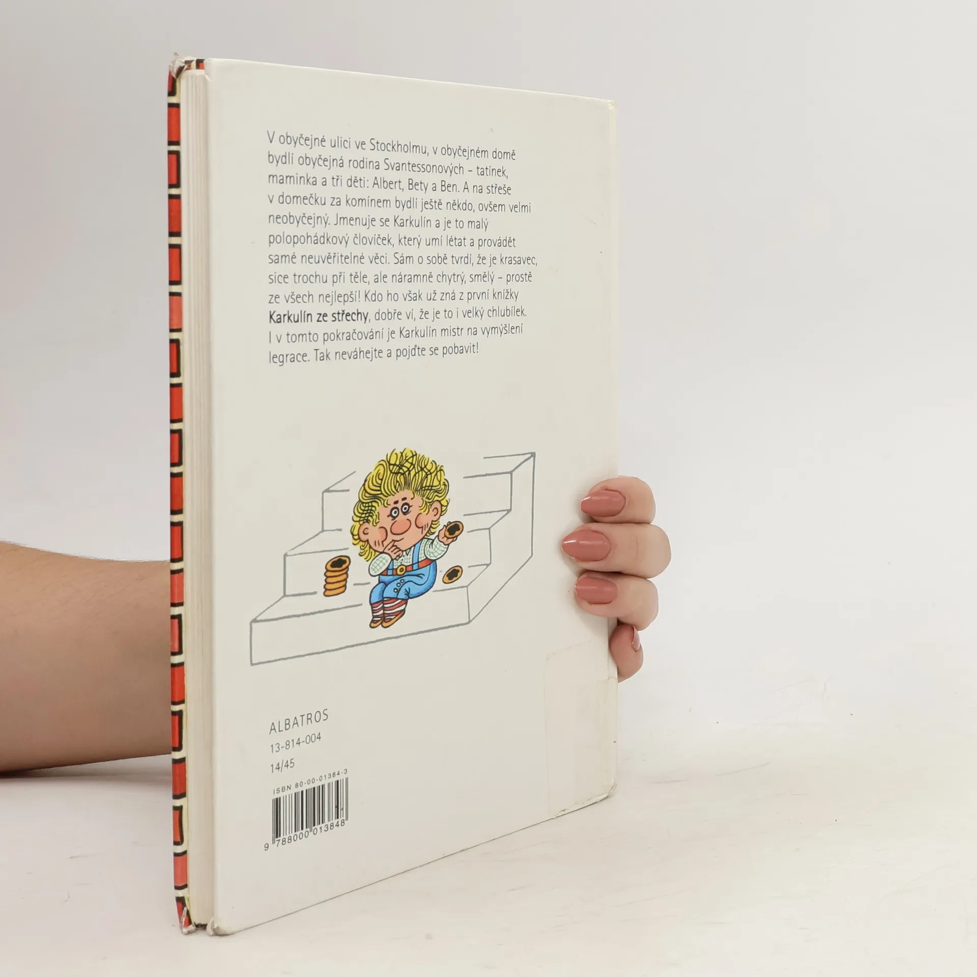 V obyčejné ulici ve Stockholmu, v obyčejném domě bydlí obyčejná rodina Svantessonových – tatínek, maminka a tři děti Albert, Bety a Ben. A na střeše v domečku za komínem bydlí ještě někdo, ovšem velmi neobyčejný. Jmenuje se Karkulín a je to malý polopohádkový človíček, který umí létat a provádět samé neuvěřitelné věci. I v této knížce je Karkulín mistr ve vymýšlení legrace. Pro děti od 6 let.