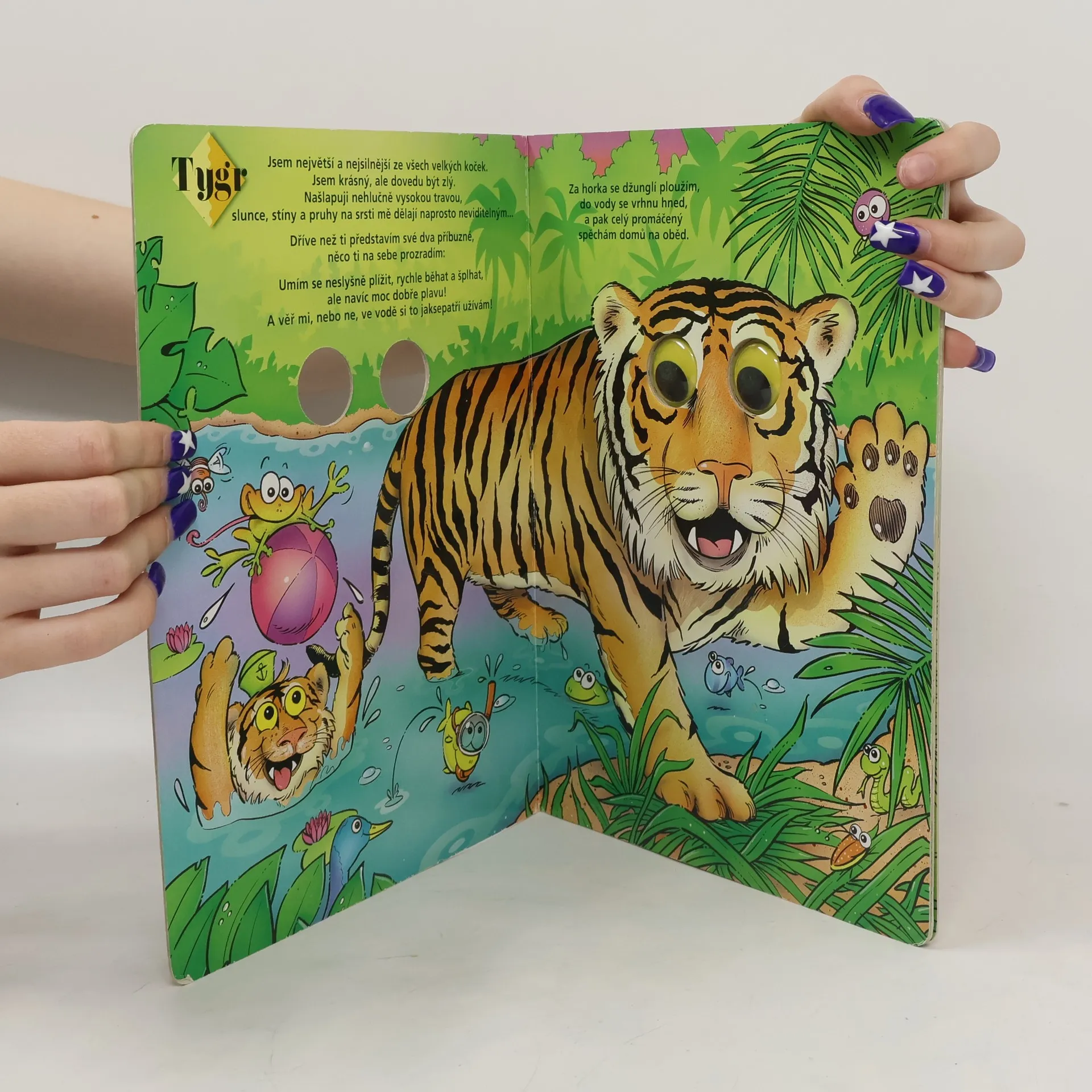 Toto leporelo vám představí divoké šelmy. Tygr, gepard, lev – o každém se v této knížce dozvíte. Jak je velký, jakou má srst, jak rychle běhá a jak má ostré drápy. S touto knihou zažijete i mnoho zábavy – zvířátka mají plastové oči s pohyblivými panenkami.