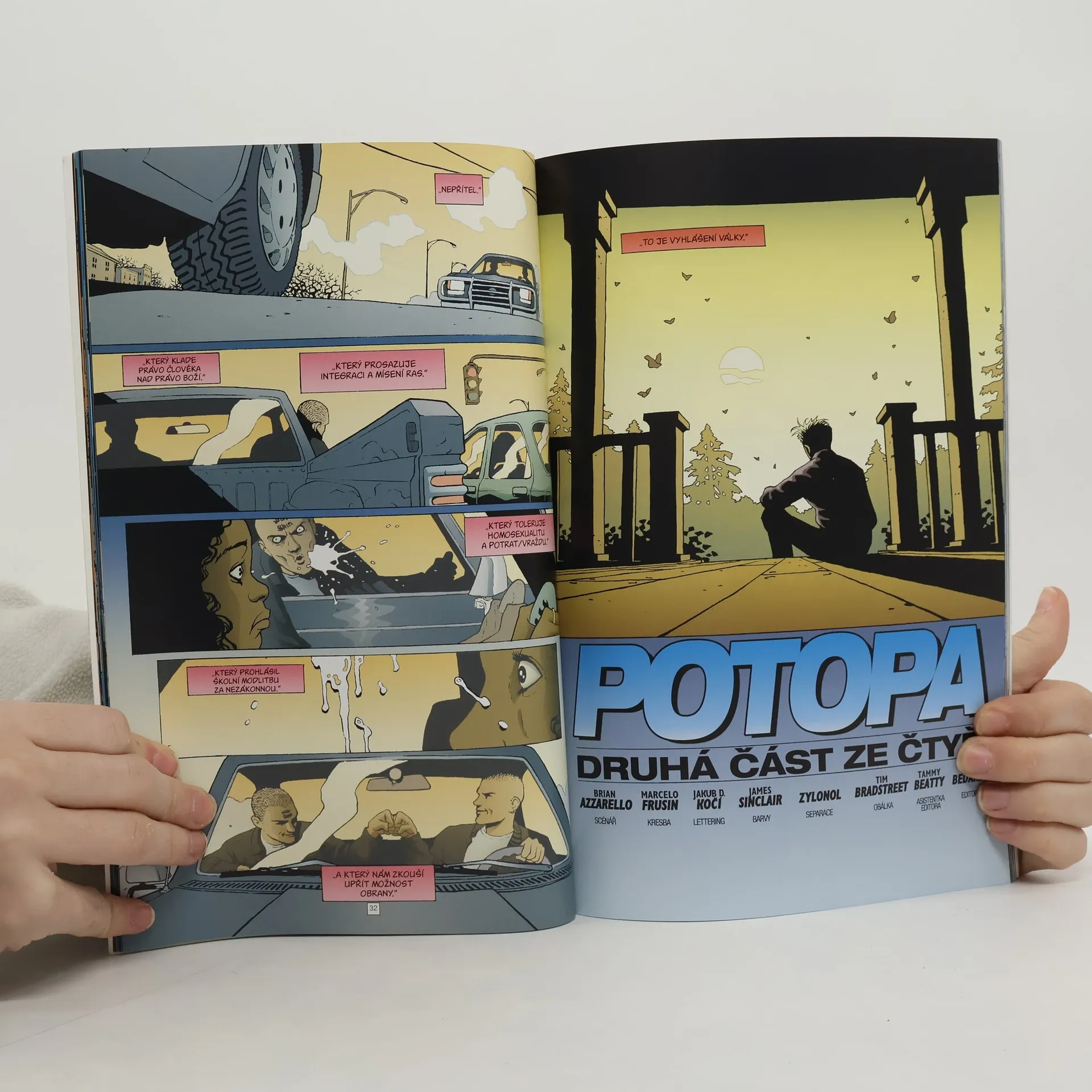 John Constantine si nejdřív odkroutil flastr v base a pak na své cestě americkými hvozdy vymetl pár temnějších zákoutí. A teď to vypadá, že se konečně dopracovává k původní prapříčině svého putování – k důvodu, proč Richard „Klikař“ Fermin spáchal sebevraždu. Ale aby se mohl setkat s Ferminovou vdovou, bude muset vstoupit do chřtánu dalšího monstra – do malebného venkovského hnízda amerických rasistů.