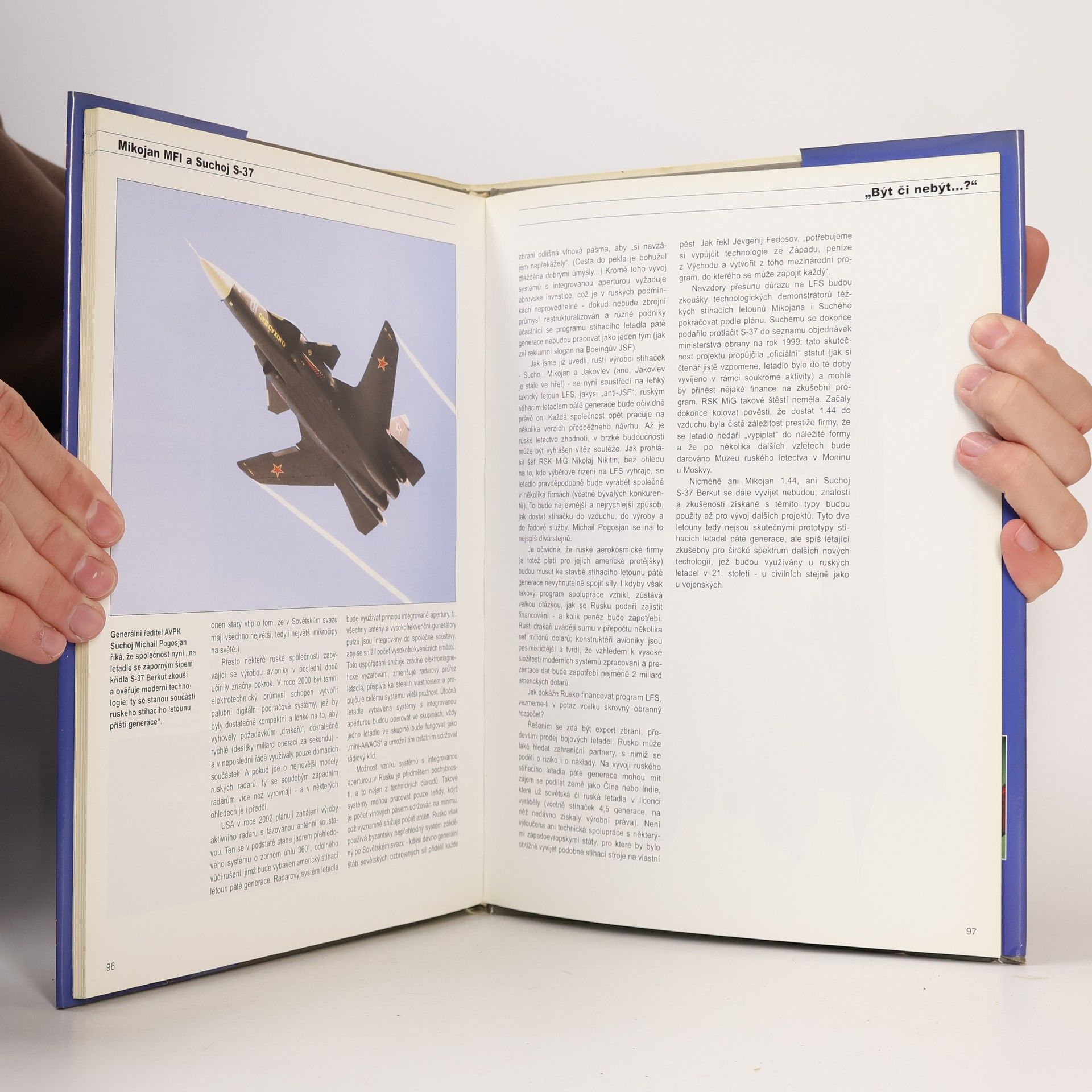 Příběh stíhacích letadel nové generace z rýsovacích prken Mikojana a Suchého, který začal v polovině 70. let, kdy se sovětský letecký průmysl a zbrojní průmysl pustily do tří rozsáhlých výzkumných a vývojových programů. Jejich cílem bylo vyvinout stíhací, bitevní a strategické bombardovací letouny nové generace, které by mohly být zařazeny do služby u sovětského letectva a protivzdušné obrany v 90. letech. Autor knihy vycházel z neutajovaných informací uveřejněných v různých zdrojích, m.j. i z tiskových zpráv ruských aerokosmických firem a ze záznamů z tiskových konferencí konaných u příležitosti různých leteckých výstav. Knihu doprovází velké množství dokumentujících fotografií. Monografie věnovaná historii vývoje ruských stíhacích letounů nové generace popisuje vstup nových modelů do současného vojenského letectví. Publikace s vojenskou leteckou tématikou popisuje vývoj dvou moderních modelů stíhacích letounů, které byly vyvinuty po objednávce sovětského leteckého průmyslu v 70. letech. Z modelů, které konstruovali Mikojan, Suchoj a Jakovlev, se nakonec realizovaly Mikojanův dvoumotorový taktický letoun MiG a Suchojův S-37.